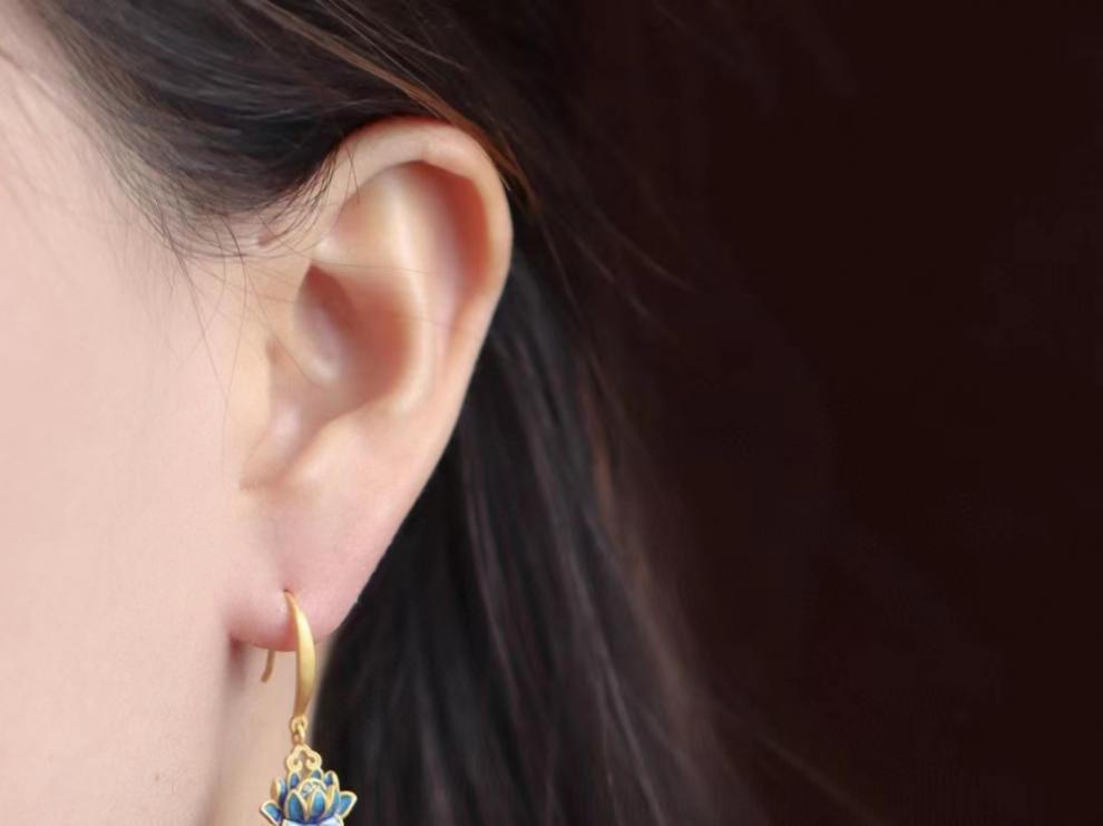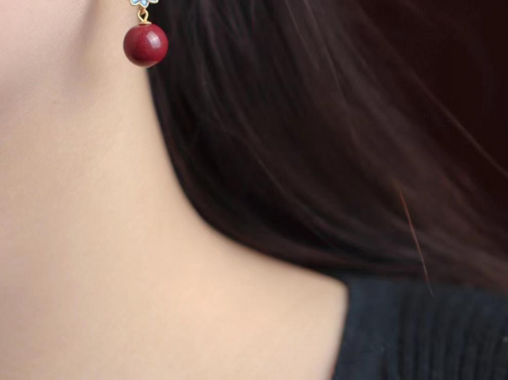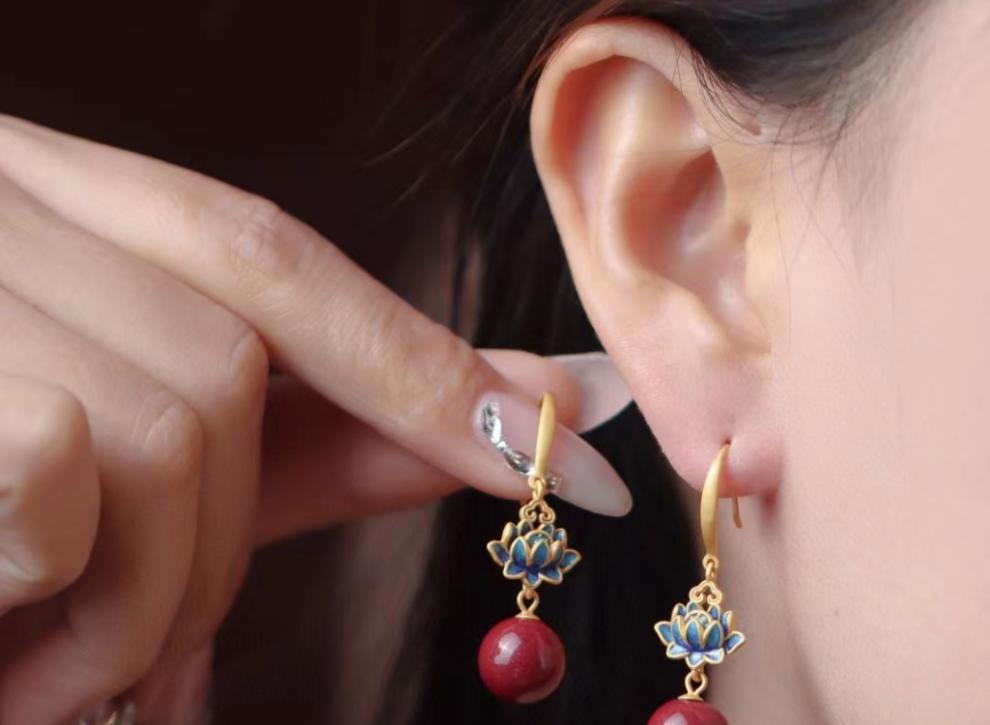 Аутентичные серьги из серебра S925 с золотым покрытием, инкрустированные пурпурным золотым песком, красные серьги из красного лака для женщин, стиль национального тренда, поджаренный голубой лотос
