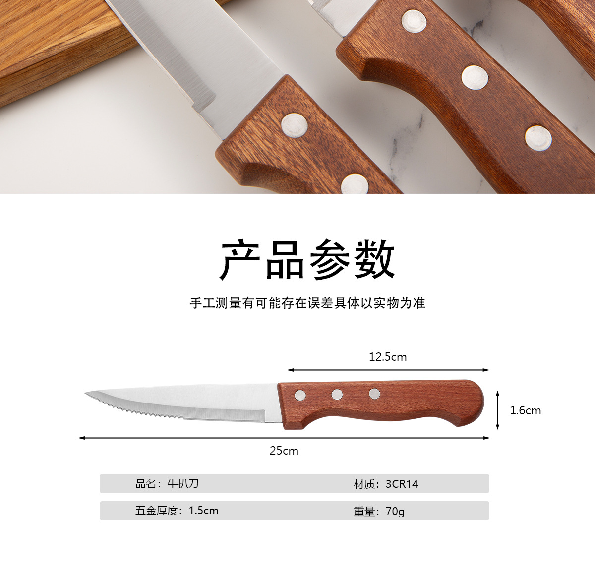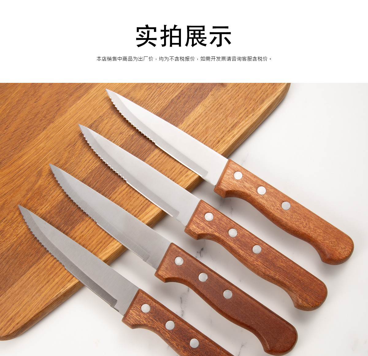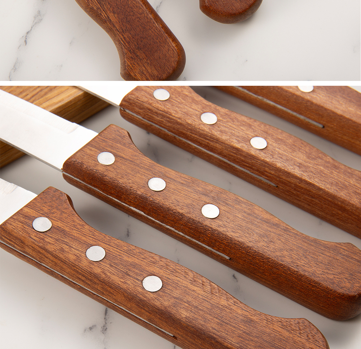 Набор ножей для стейка из нержавеющей стали с ручкой из розового дерева, 4 предмета