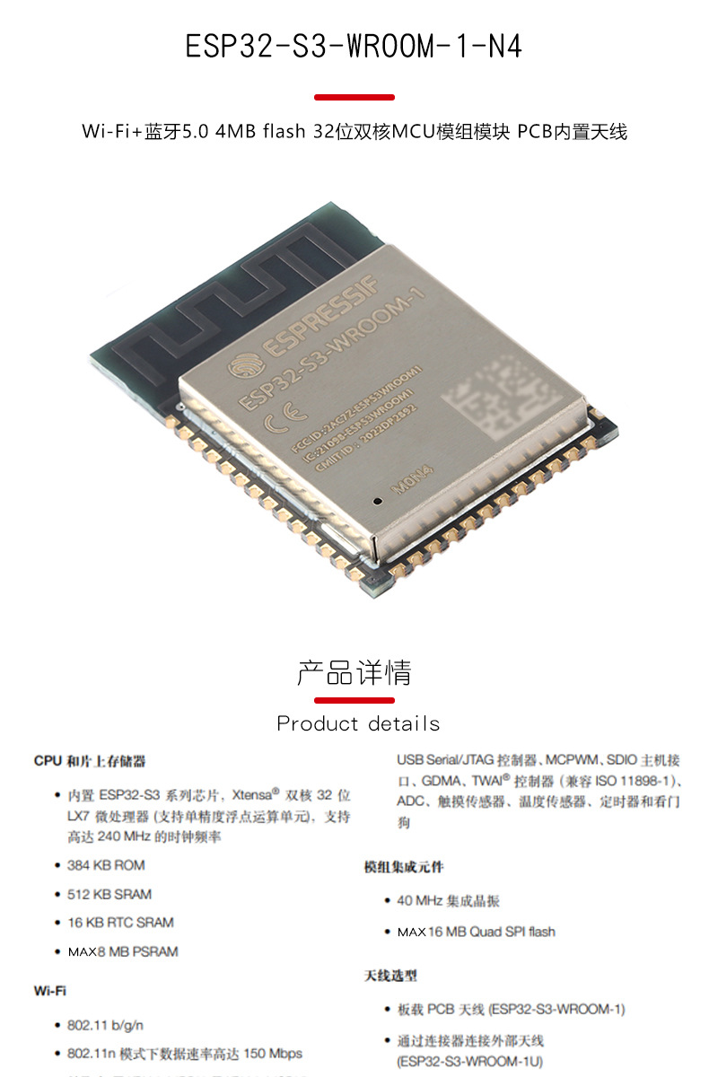 Код продукта Esp32-s3-wroom-1 - n4