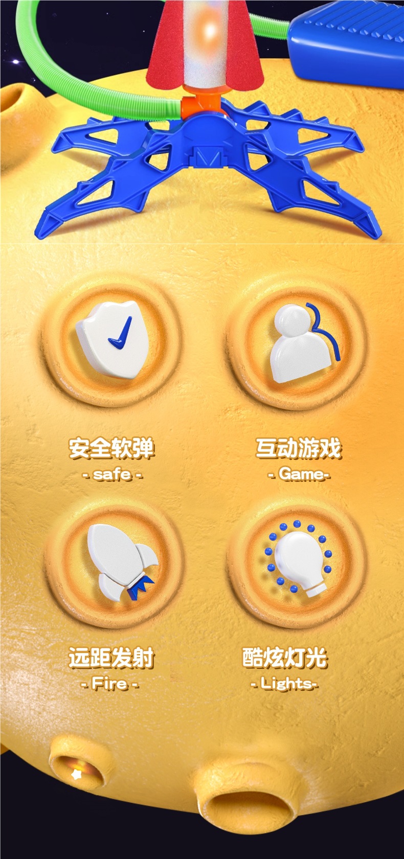 📦 | Two-player battle version ★ Ultra-long launch 35m high] 2 rocket launchers + 6 rockets (3 lights + 3 without lights) | ¥24.64 / ≈ 298 ₽ | 51000 | 6011011743618 | |