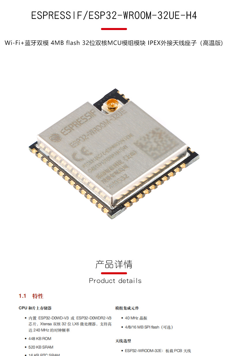 Esp32-Wroom-32Ue-H4 Wi-Fi+Bluetooth 4Mb 32-битный двухъядерный МК модуль с одним местом