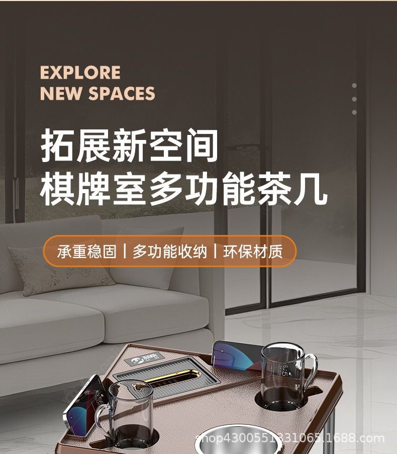 Стол для махjong, кофейный столик, чайная полка, шахматы и карты, маленький кофейный столик рядом с махjong машиной, пепельница, подстаканник, чайный стол