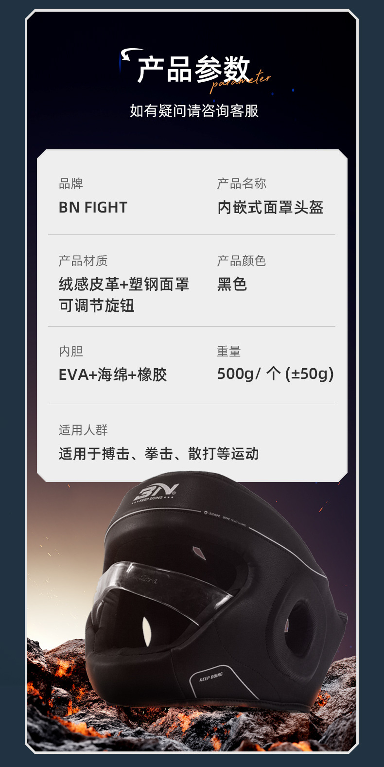 Шлем Bn Fight для бокса, полностью закрытый, утолщенный защитник головы и челюсти для тхэквондо, шлем для тайского бокса