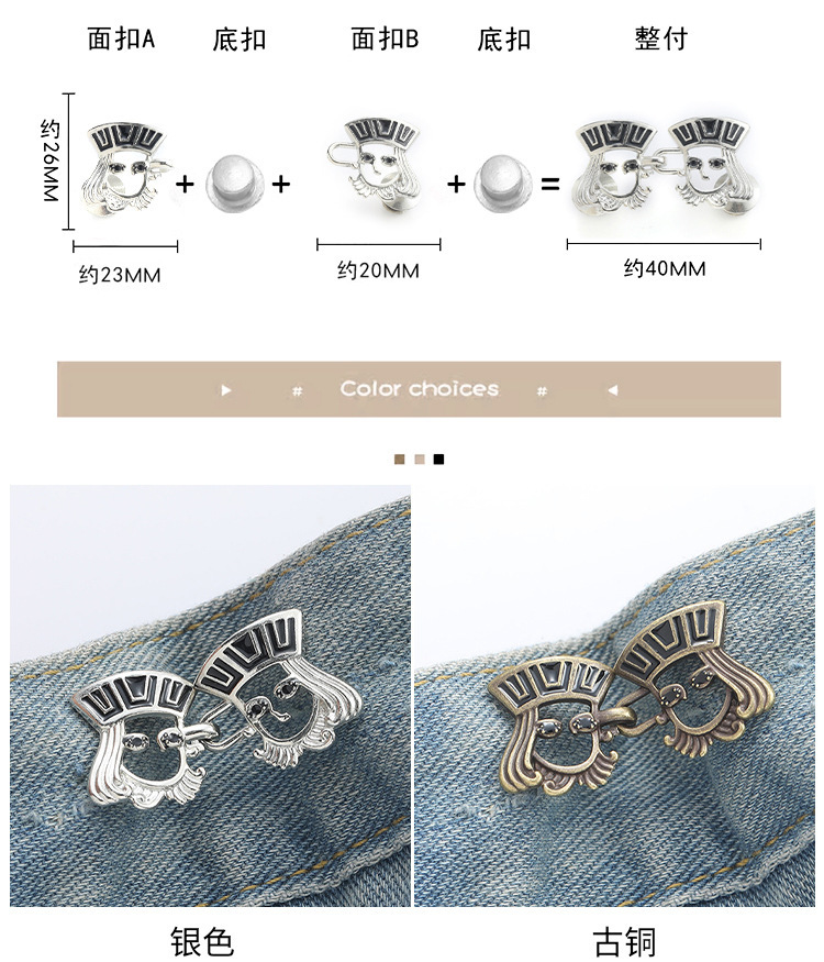 Съемная кнопка большого размера без шитья для эффекта утягивания талии