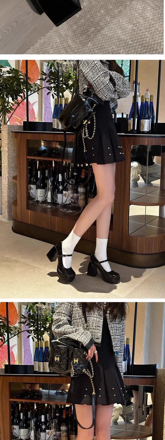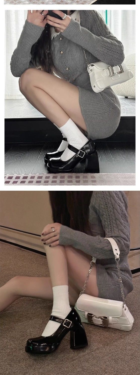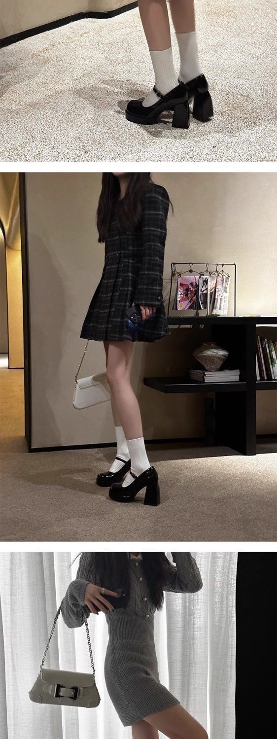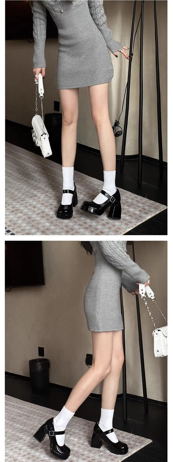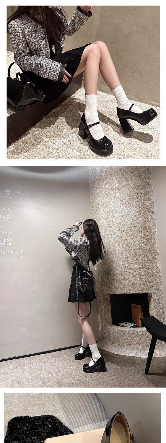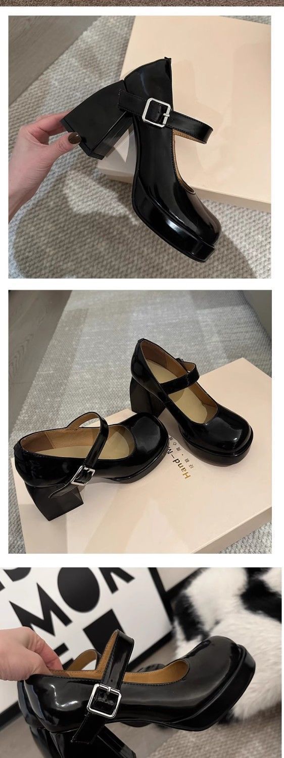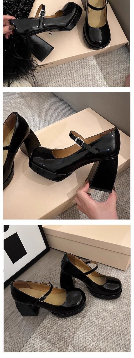 Французские черные толстые высокие каблуки, новые водонепроницаемые платформы 2025 года, универсальные туфли Мэри Джейн с одним ремешком и круглым носком для женщин