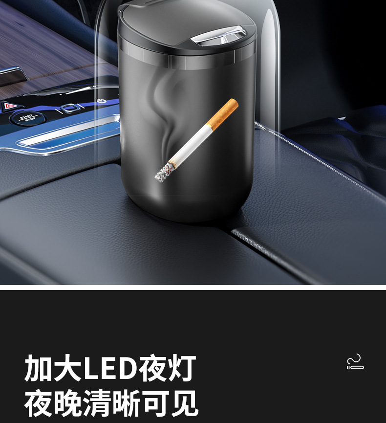 Автомобильная пепельница с металлической вставкой, крышка с одним касанием и подсветкой, открытие одним касанием, противо пыли, высокое эстетическое значение
