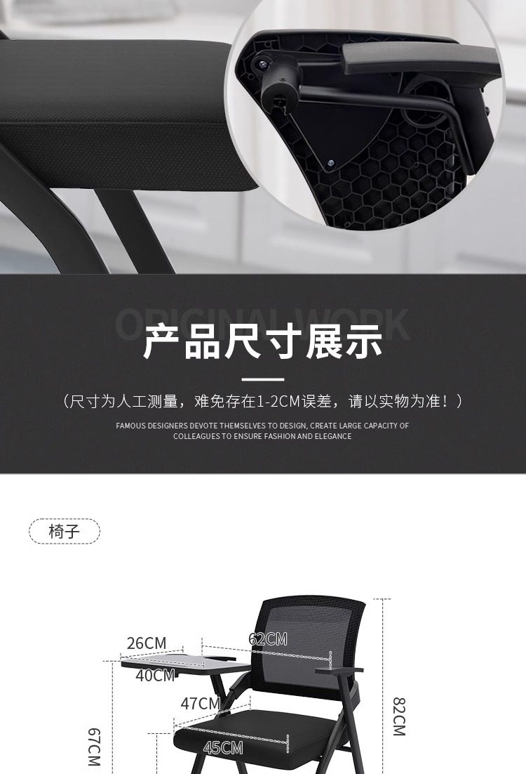 Складной стул с столешницей для конференций и обучения, интегрированный табурет, офисный стул с письменной доской