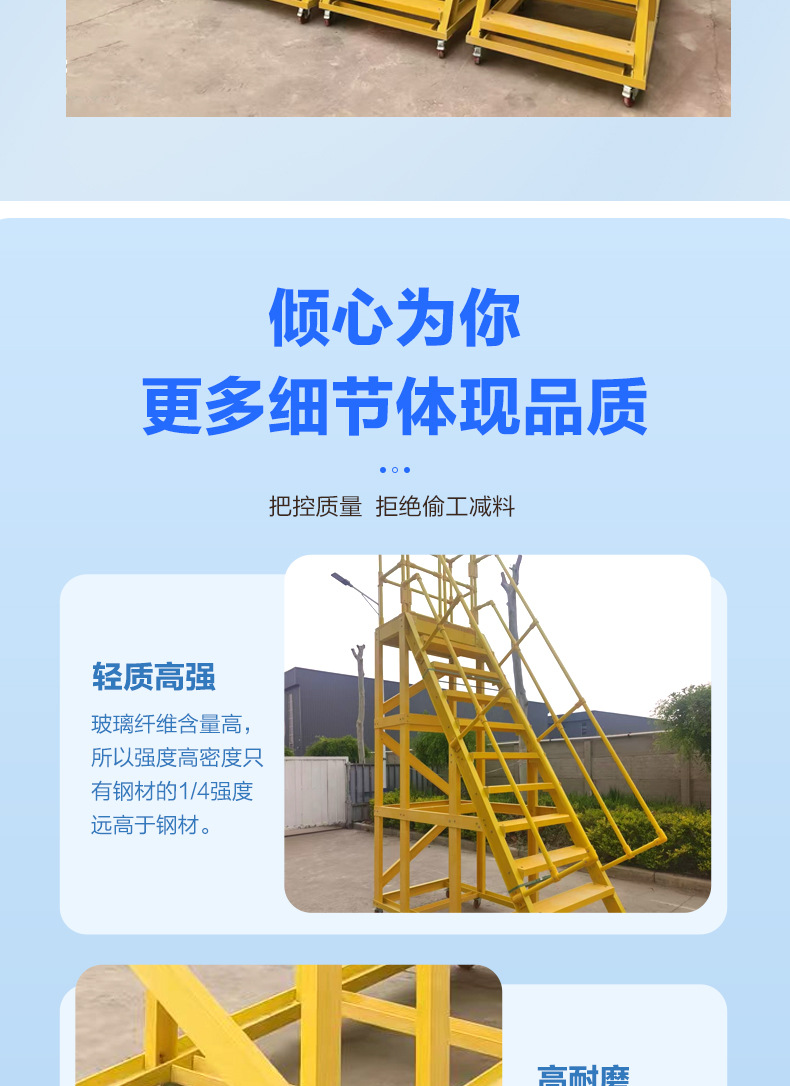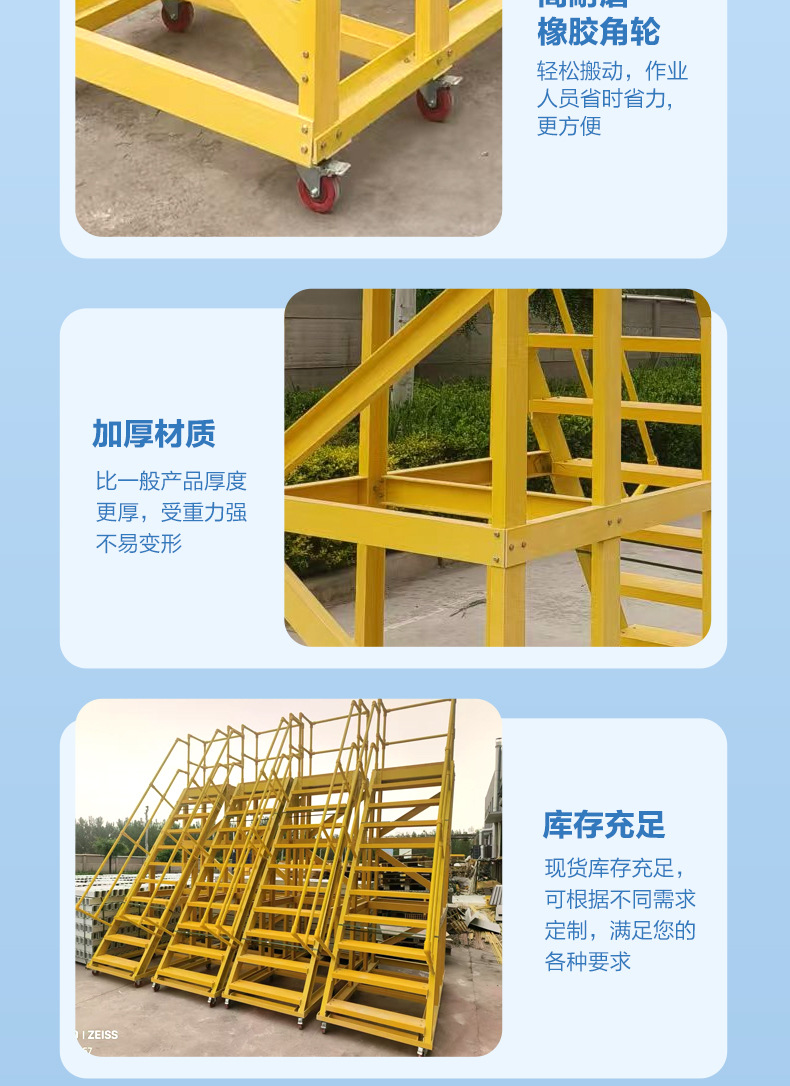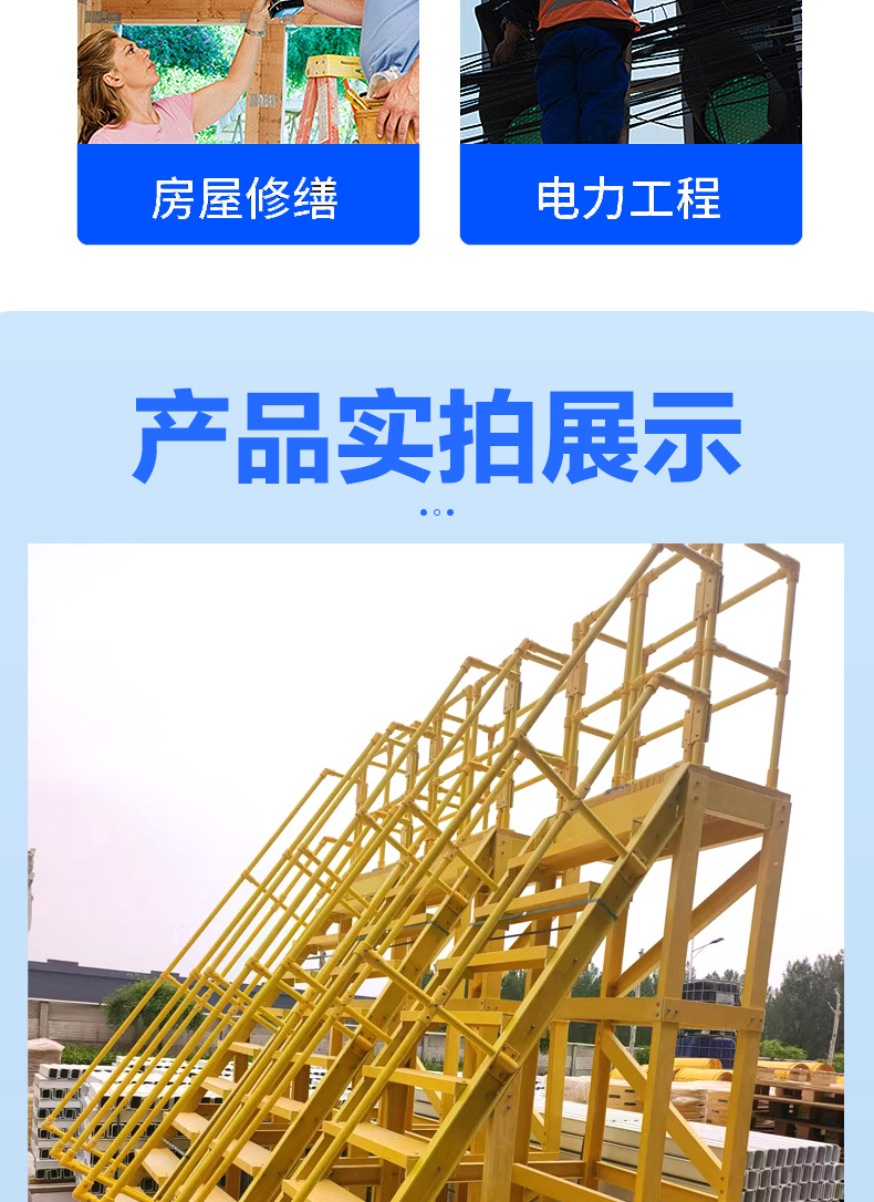 Стеклопластиковая лестница с изоляцией, съемная платформа для проверки безопасности на высоте, лестница с противоскользящими перилами
