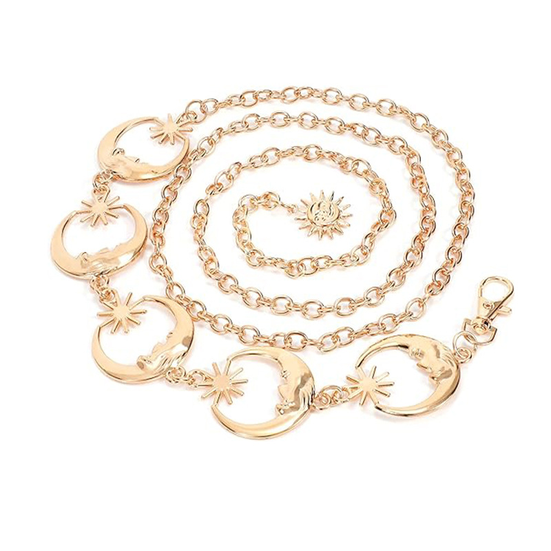 Новый женский повседневный ремень с металлической цепочкой и украшением в виде луны, подходит для сочетания с юбками и брюками, модный
