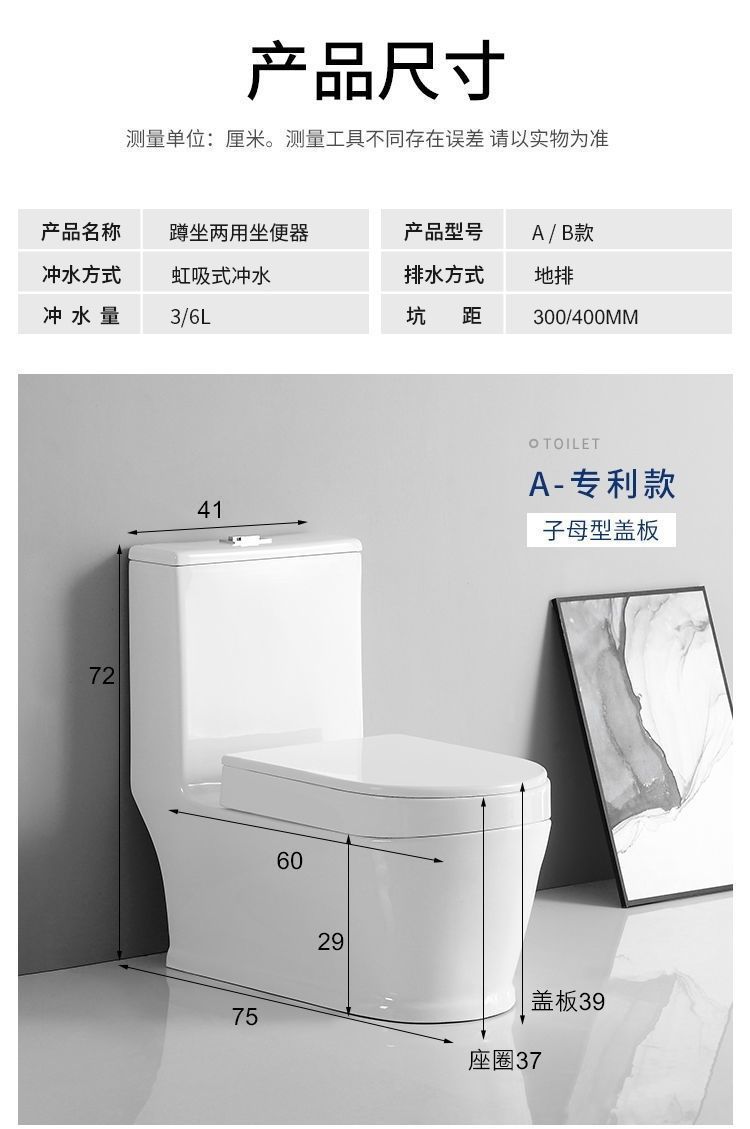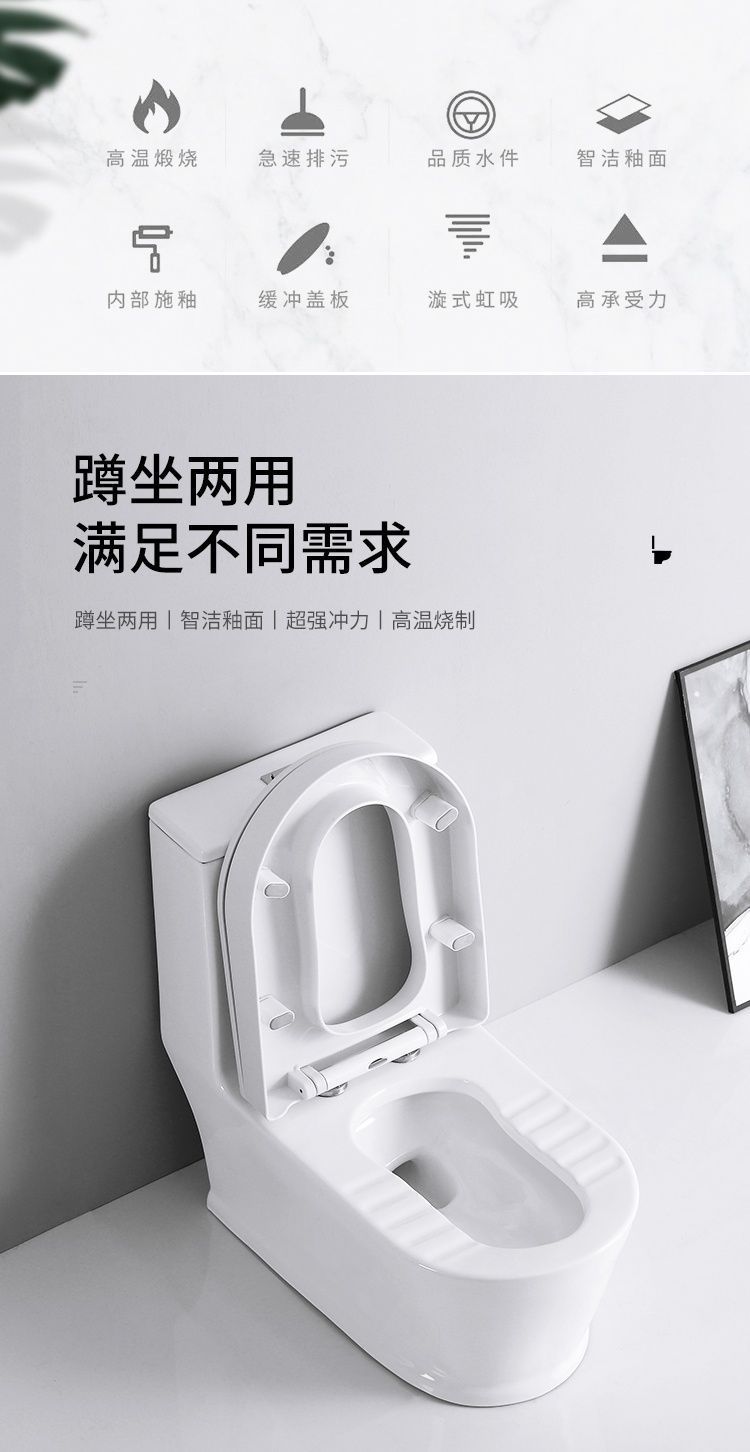 Сифонный туалет двойного назначения для дома, подходит для сидения и приседания, с большим керамическим сливом