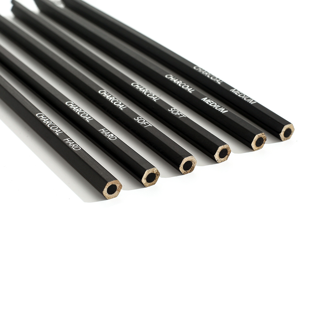 Угольный карандаш, обработка хвостовых изделий, шестигранный стержень, черный угольный карандаш для эскизов, художественный угольный карандаш для студентов