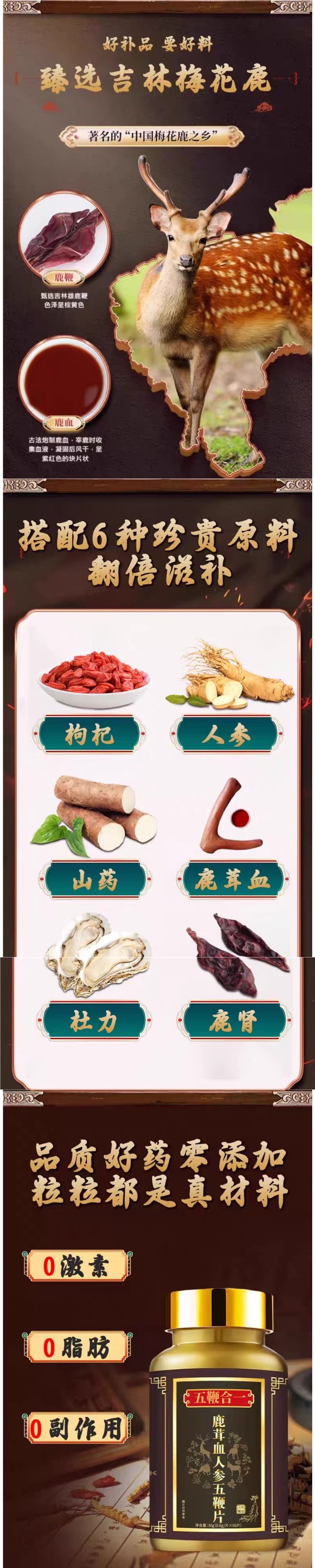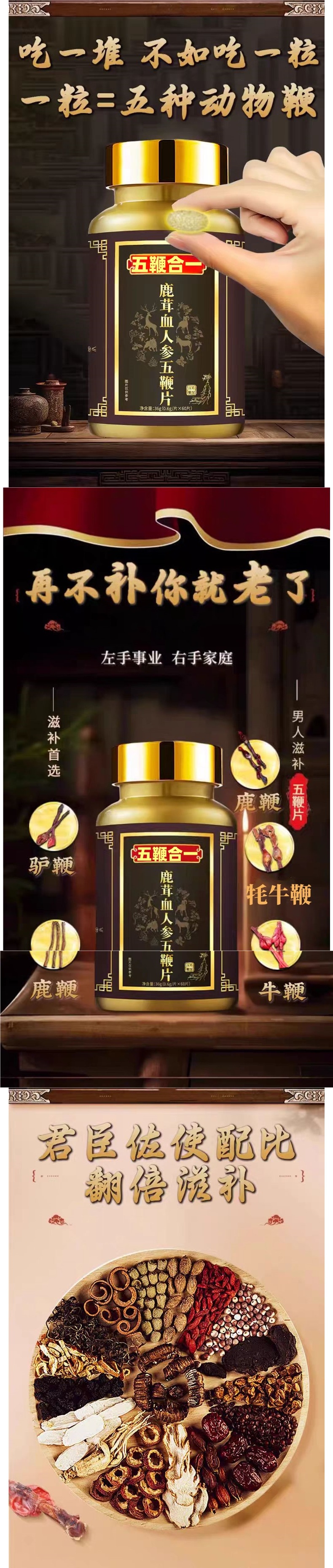 Кровь рогов, женьшень, таблетки из пяти хлыстов, мужские яички, оленьи хлысты, коровьи хлысты, овечьи хлысты, таблетки полигонатум, пептиды мака и устриц