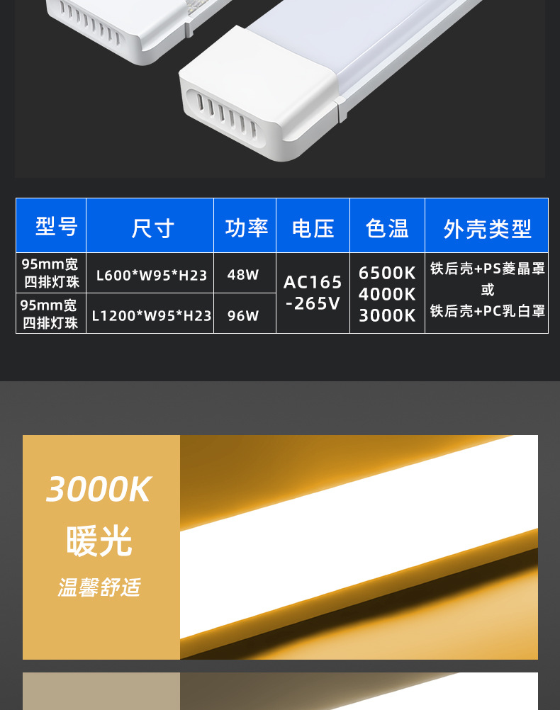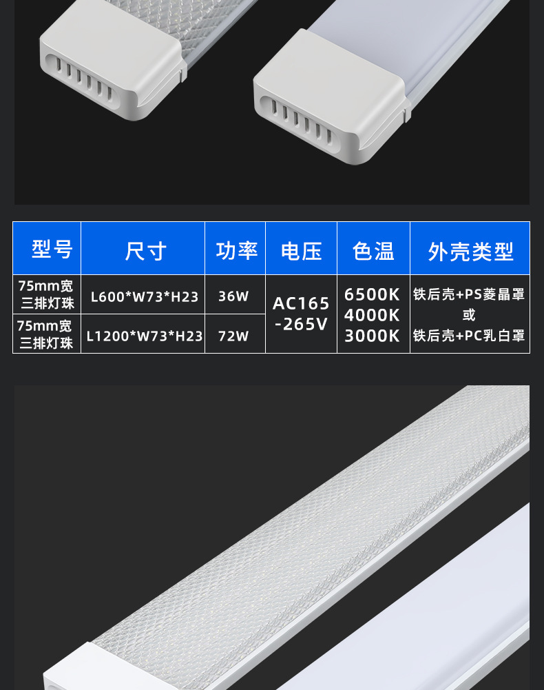 ![]() | 1.2m -73mm wide-three rows of light sources-72w-milky white cover | ¥12.8 / ≈ 154 ₽ | 9339 | 5924938292323 | |