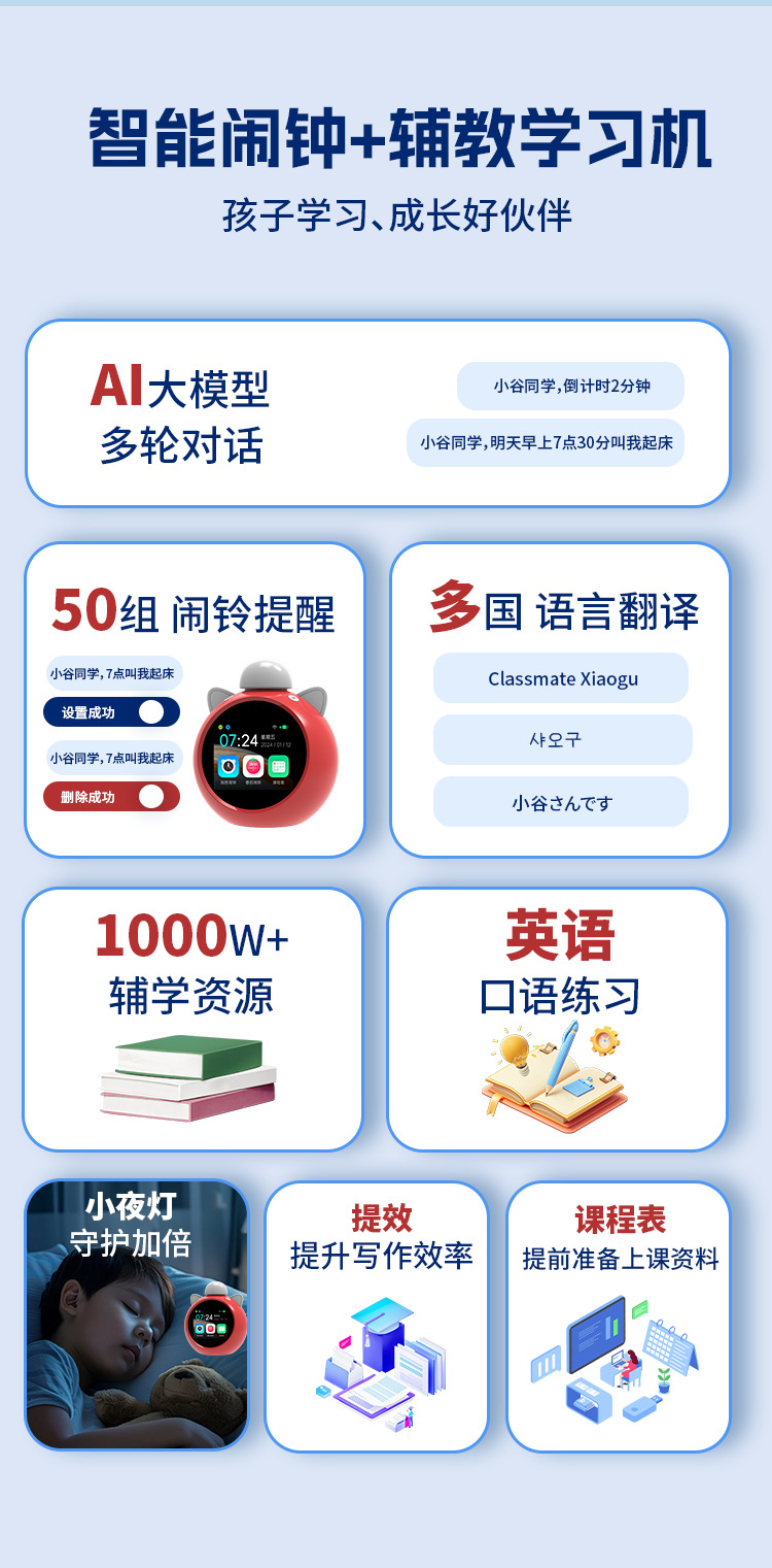 Умные будильники с большим данными Ai, обучающая машина для студентов, машина для просвещения, робот для раннего образования детей