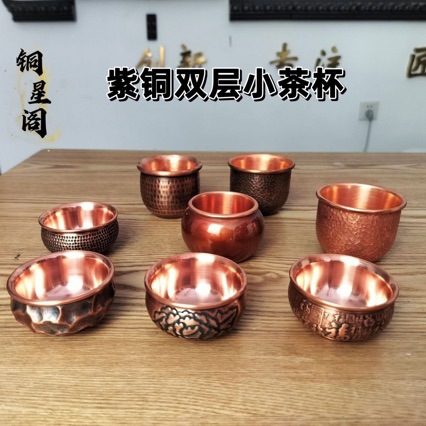 Чашка из чистой меди, чайная чашка из чистой меди, чашка для кунг-фу, ручная толстая чайная посуда из чистой меди, чашка для кунг-фу, одиночный предмет