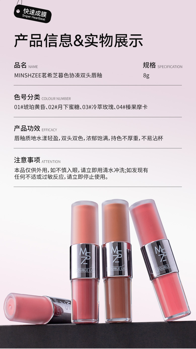 Ming Xizhi Сумеречный Двусторонний Губной Глазурь Губной Глазурь Водяной Гладкий Зеркальный Бархатный Матовый Губной Пух Липстик Отбеливающий Женский Кросс-Бордер Губной Глазурь