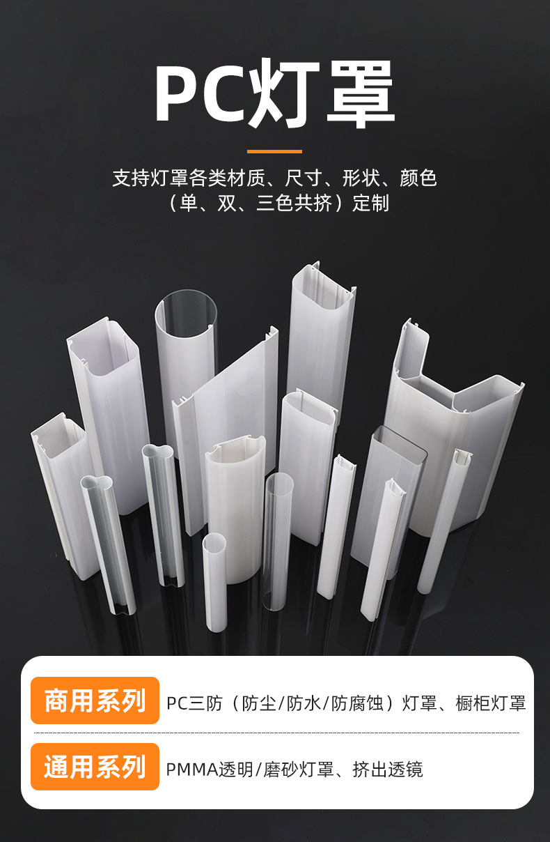 半透明PC灯罩定制挤塑加工LED线条塑料灯罩商用橱柜展示柜PC灯罩