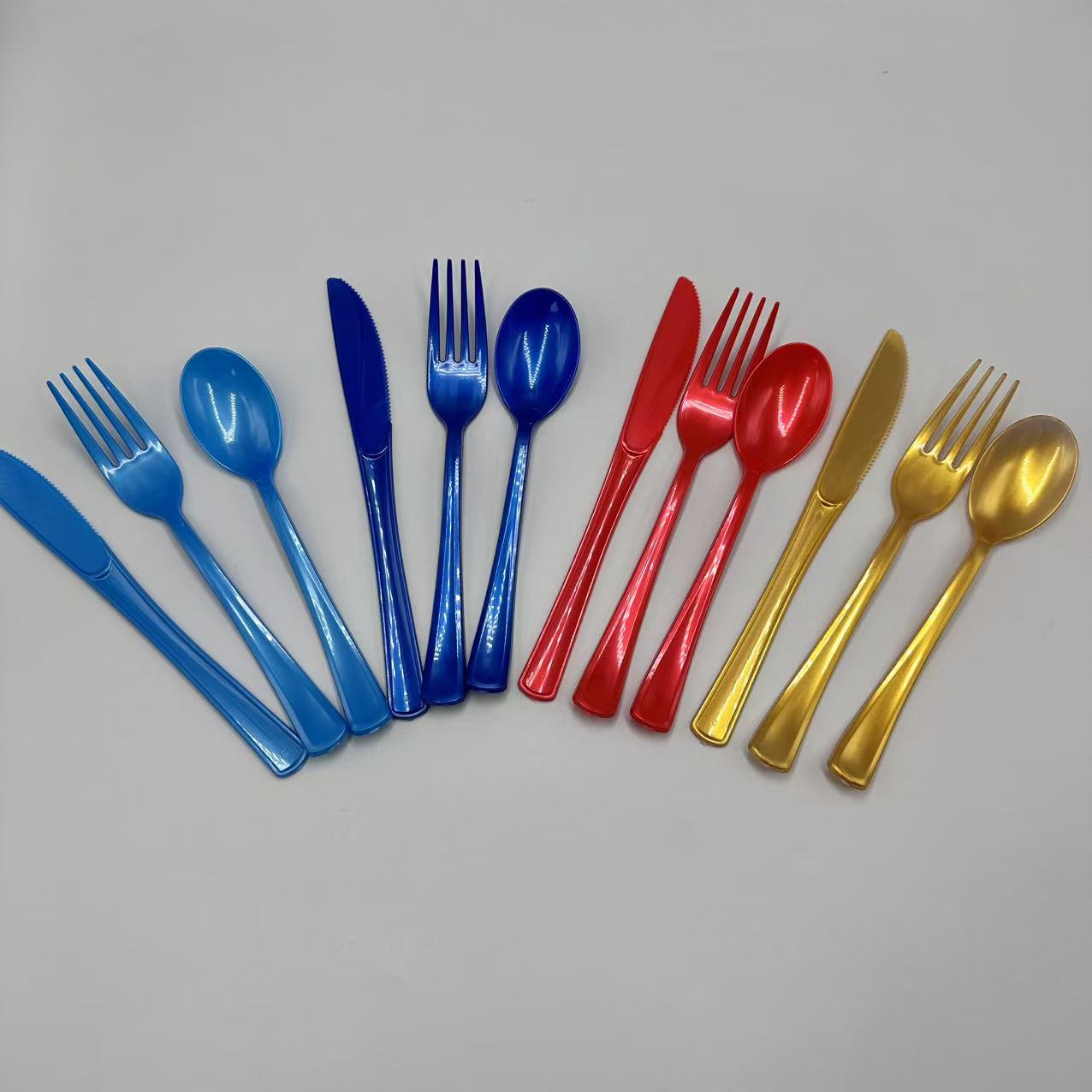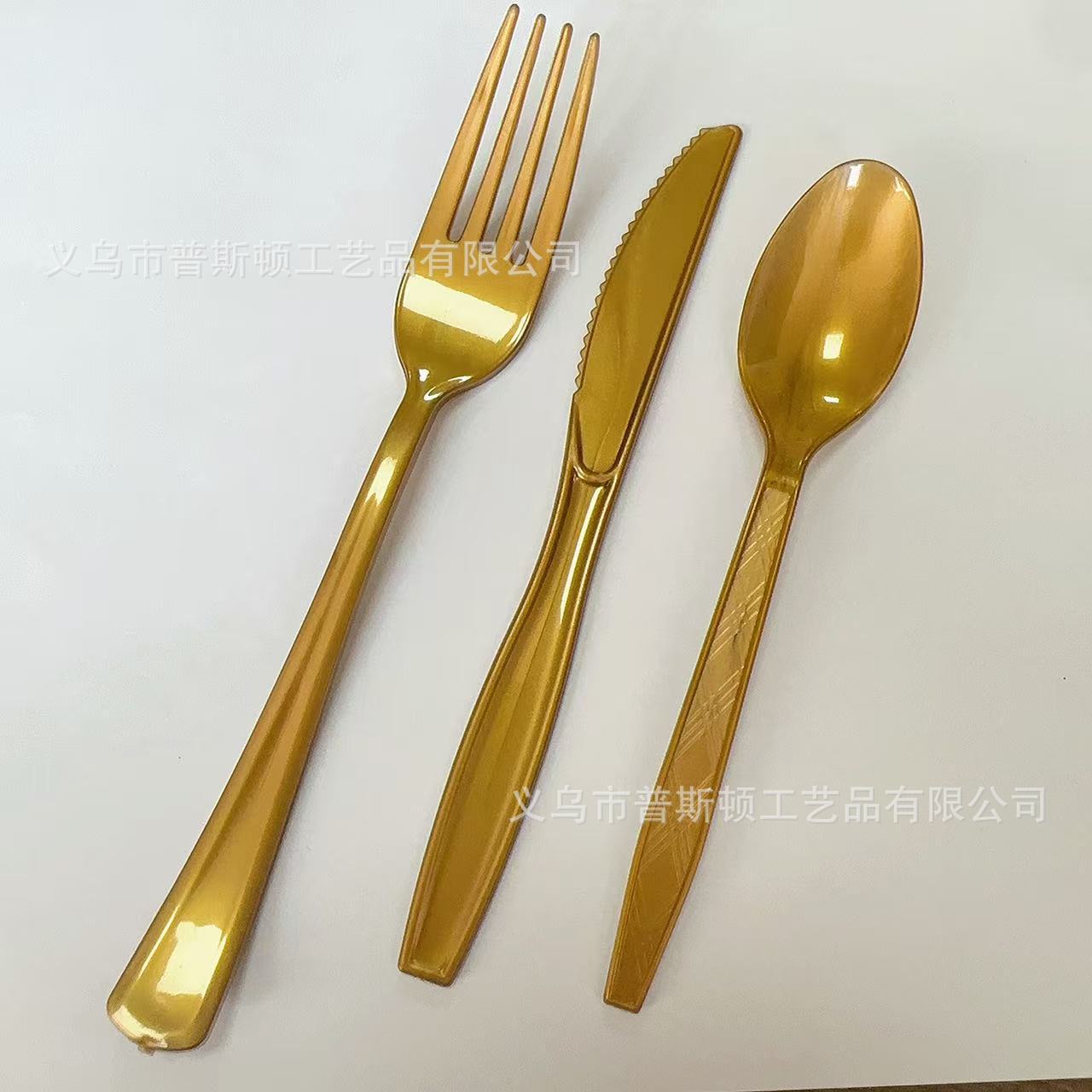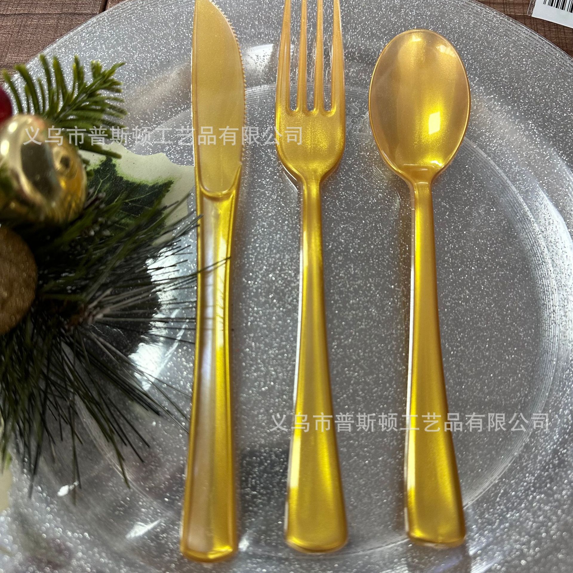 Одноразовые пластиковые нож, вилка и ложка 5г, цветные с золотым порошком, для праздников