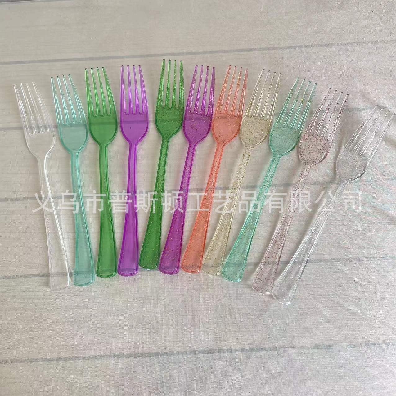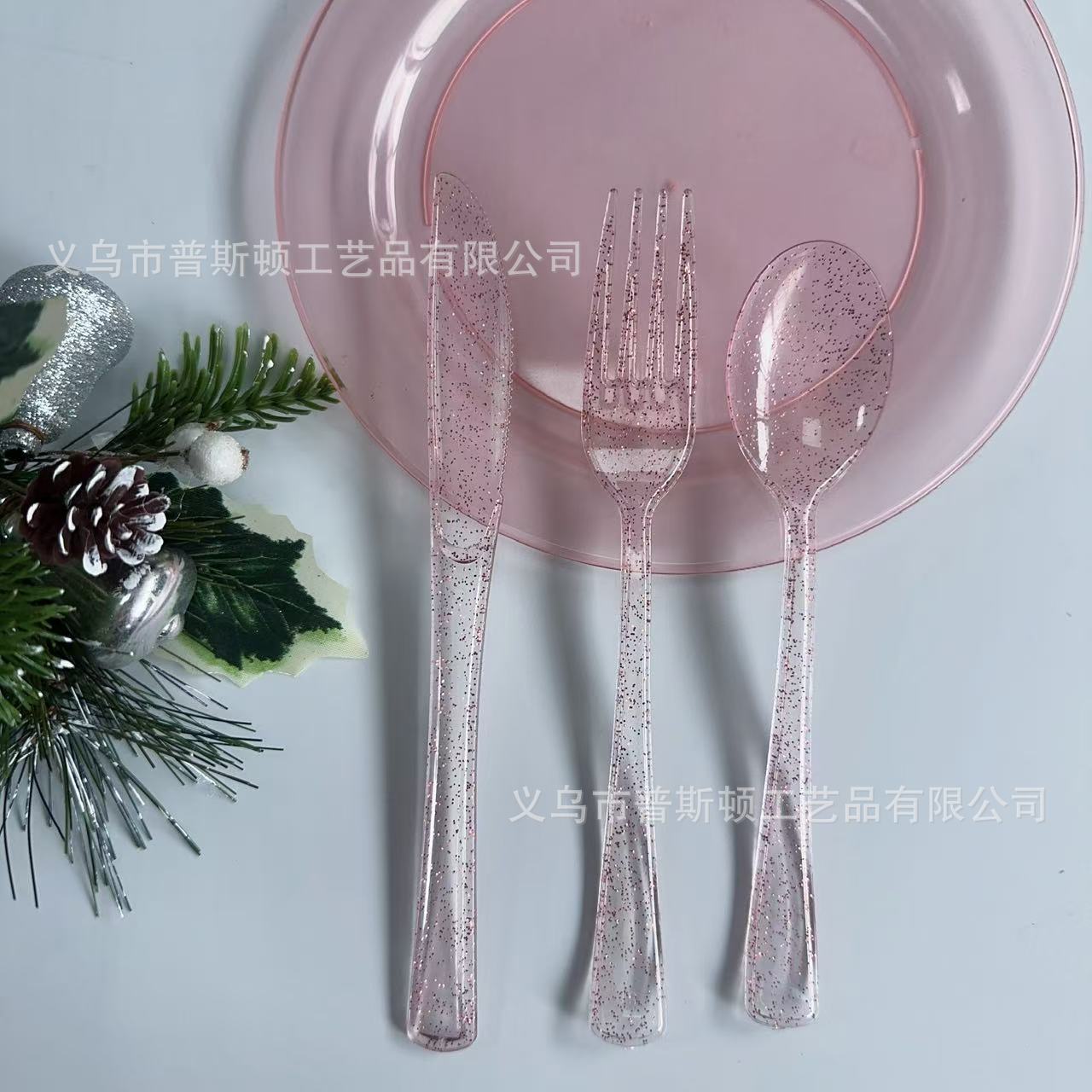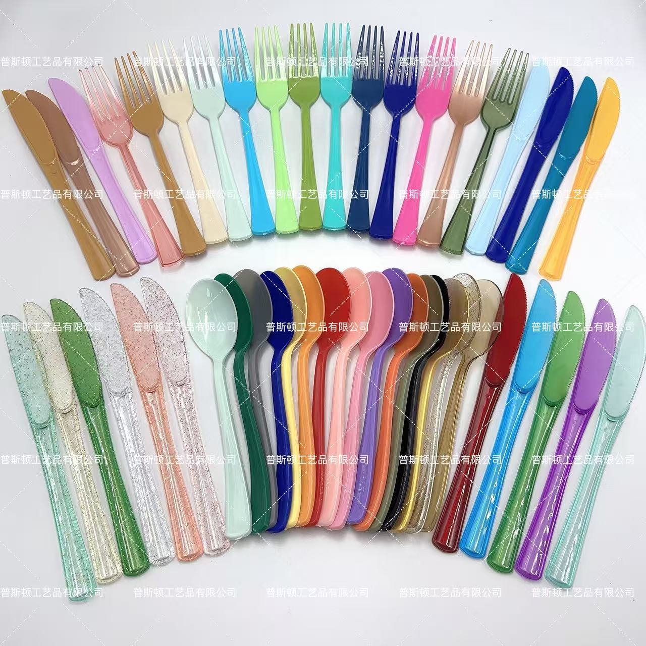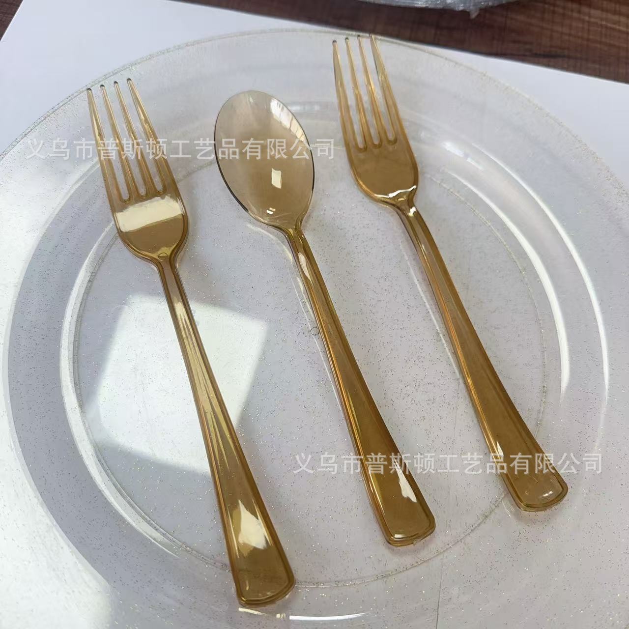 Одноразовые пластиковые нож, вилка и ложка 5г, цветные с золотым порошком, для праздников