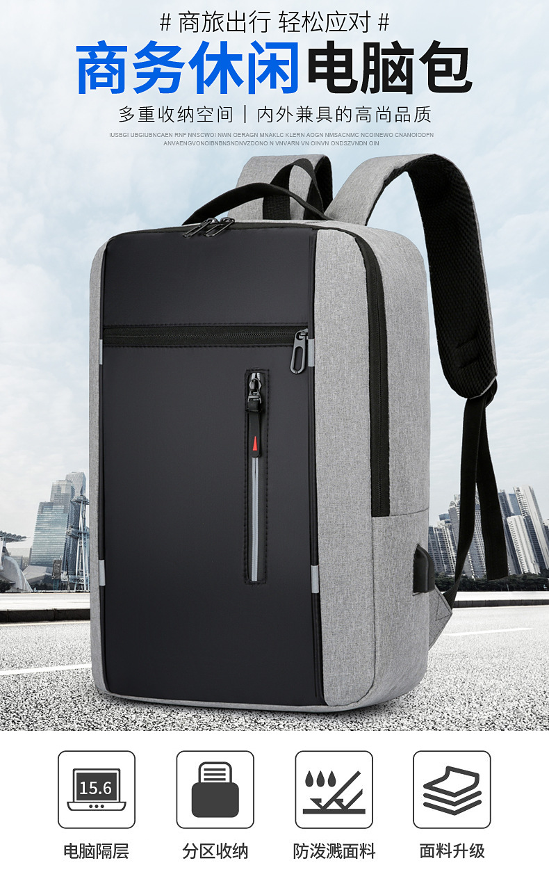 Рюкзак мужской деловой повседневный с USB, многофункциональный для деловых поездок, commuting, для ноутбука, кросс-бодер