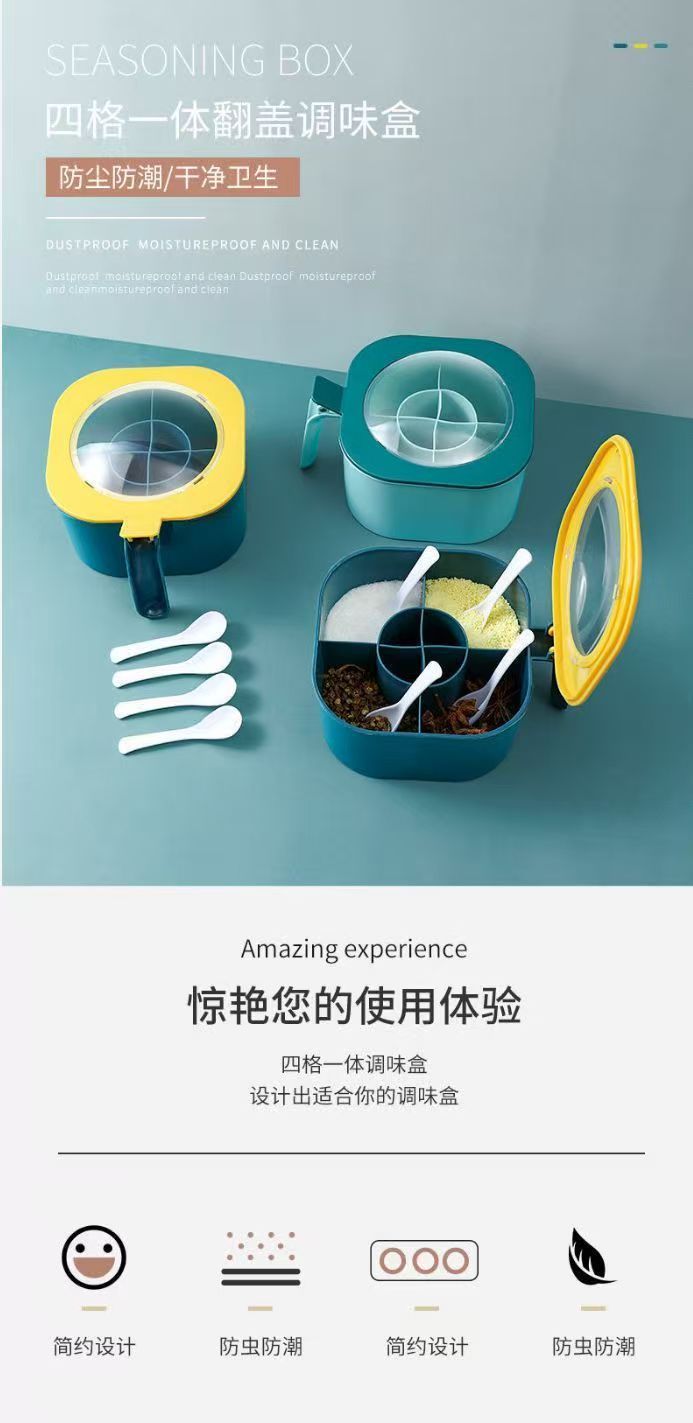 Набор контейнеров для приправ с несколькими отделениями, кухонные принадлежности, контейнер для соли с крышкой