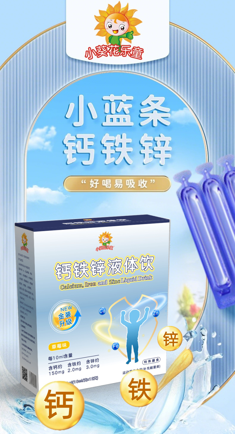 Кальций, железо, цинк Маленькое подсолнечное детское тройное питание кальций, железо, цинк маленькая синяя бутылка жидкость для роста детей