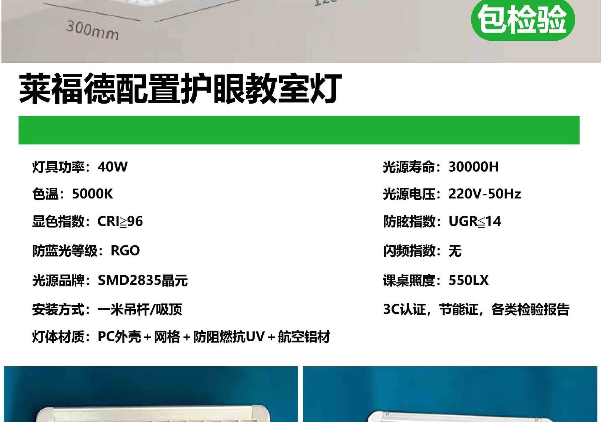 ![]() | Full spectrum eye protection classroom lamp lyford configuration 300*1200mm 40w telescopic pole (minimum bid of 10 pieces) | 40W | ¥90.0 / ≈ 1 084 ₽ | 9990 | 5935215957519 | |