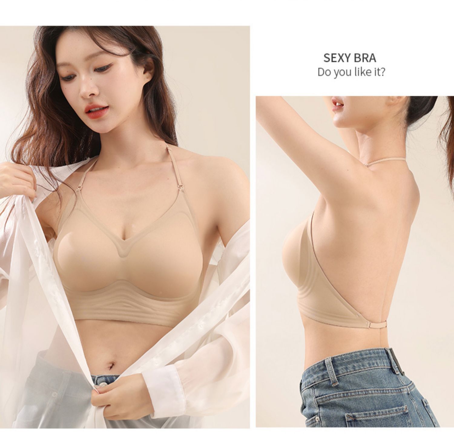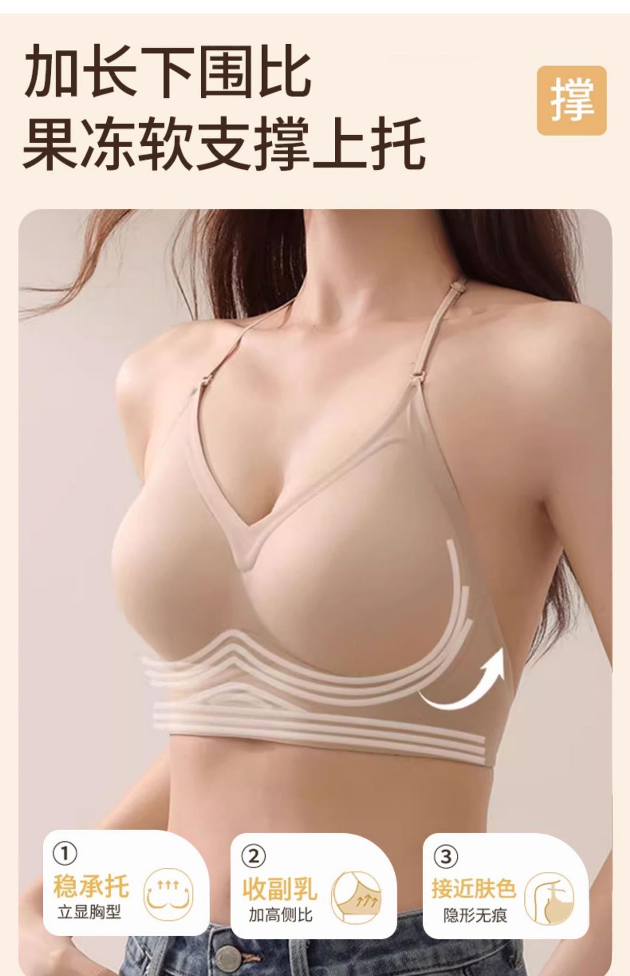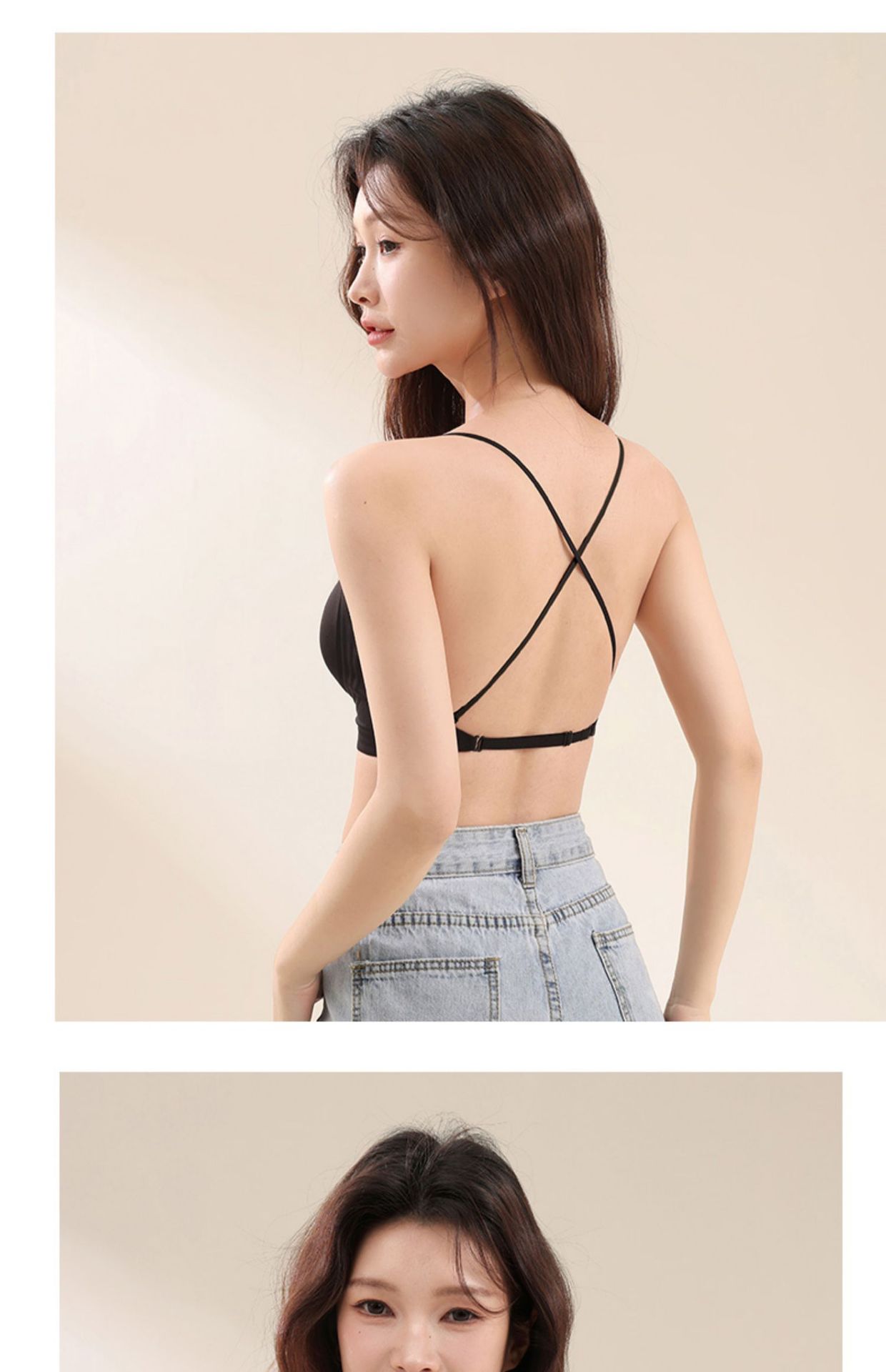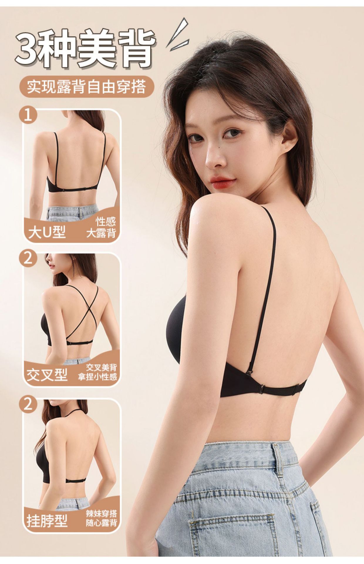 Черный топ-бюстгальтер с завязками на шее для женщин с маленькой грудью, пуш-ап, перекрестная спина, без спинки, невидимый и бесшовный