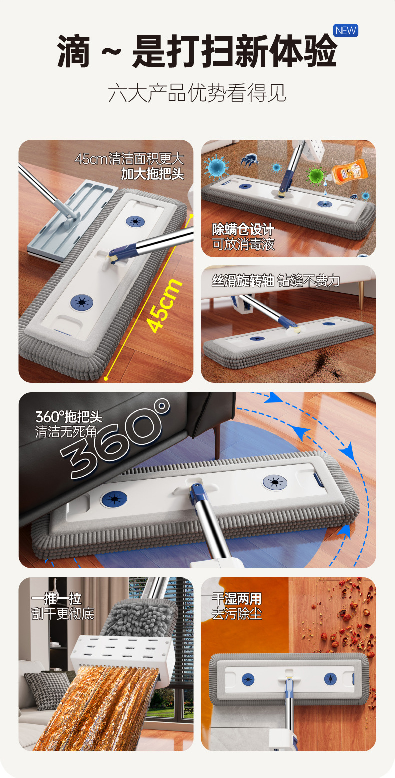 Швабра из микрофибры для домашнего использования, ленивый одношаговый уборщик, двойное использование для сухой и влажной уборки