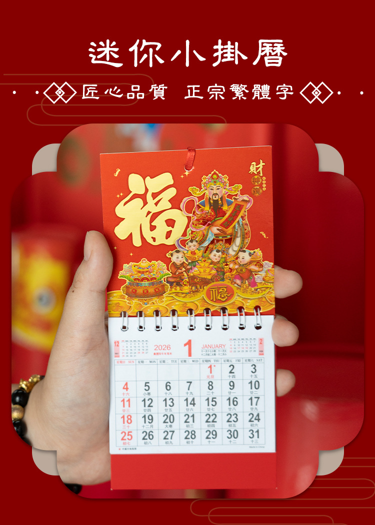 2026 Год Лошади Золотая Фольга Маленький Талисман Гонконг Праздничный Мини Календарь Традиционный Китайский Месячный Календарь Иностранная Торговля Общественное Издание