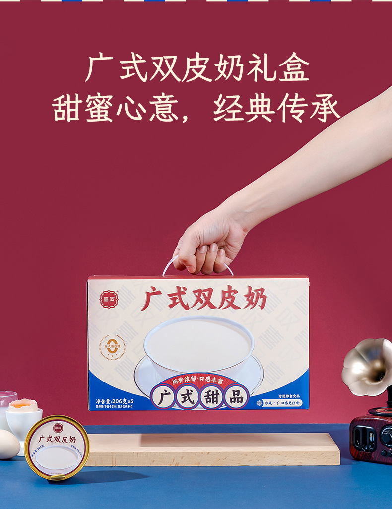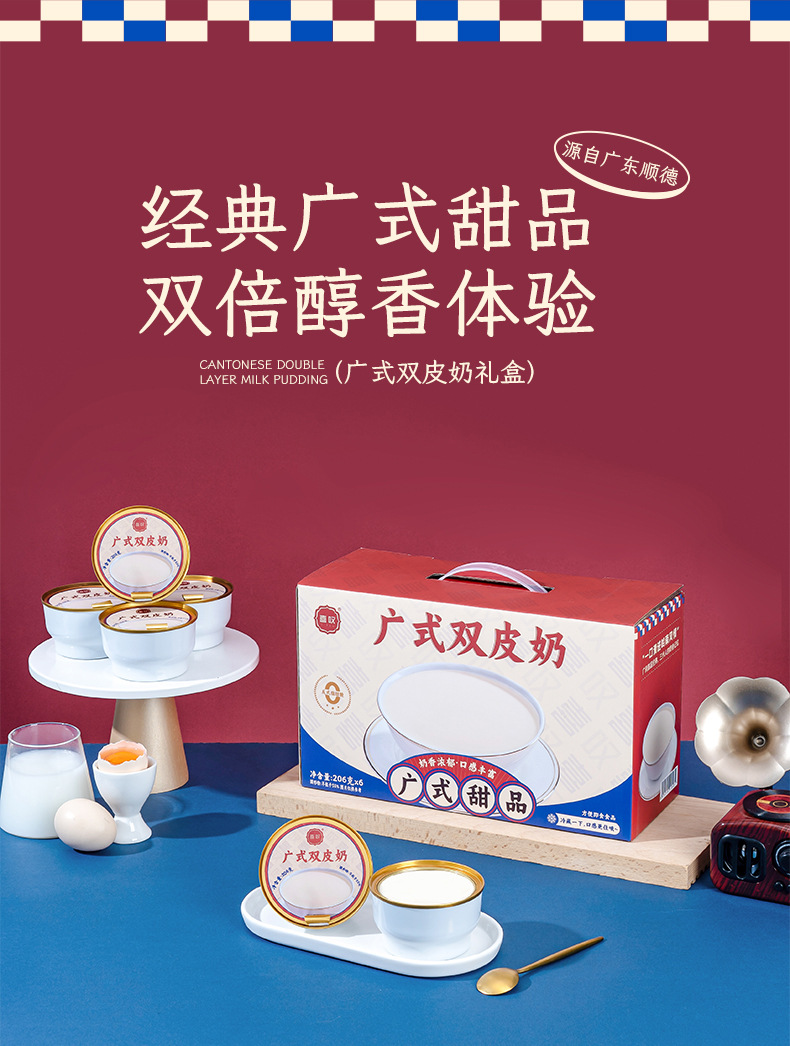 Мгновенный двойной молочный порошок классического кантонского вкуса 206г, завтрак, гонконгский десерт, оптовая продажа, готовый к употреблению, подарочная коробка на 6 чашек