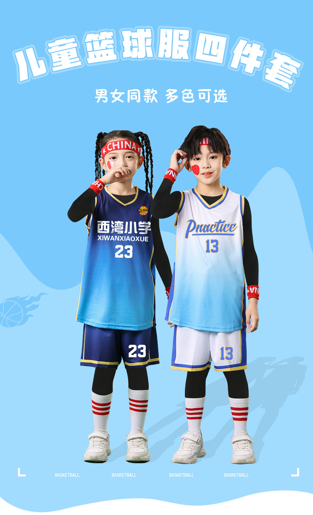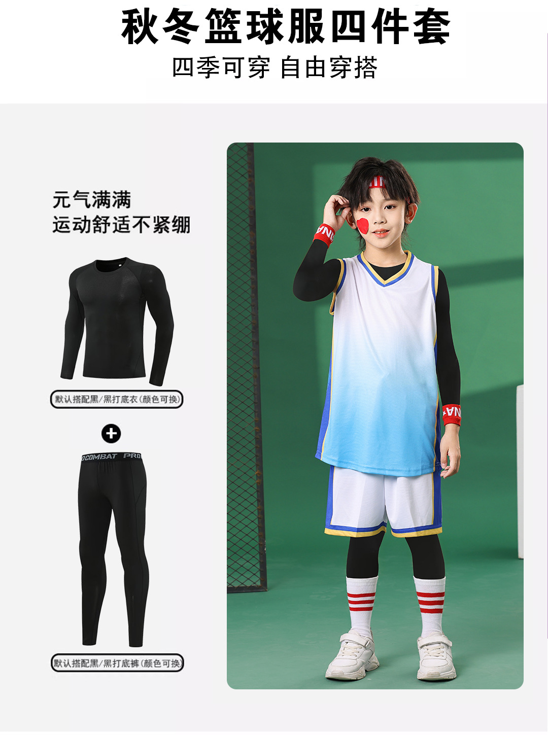 Детские баскетбольные формы, униформа для мальчиков начальной школы осенью и зимой, спортивные соревнования, женская тренировочная форма, четырехпредметная баскетбольная форма осень-зима