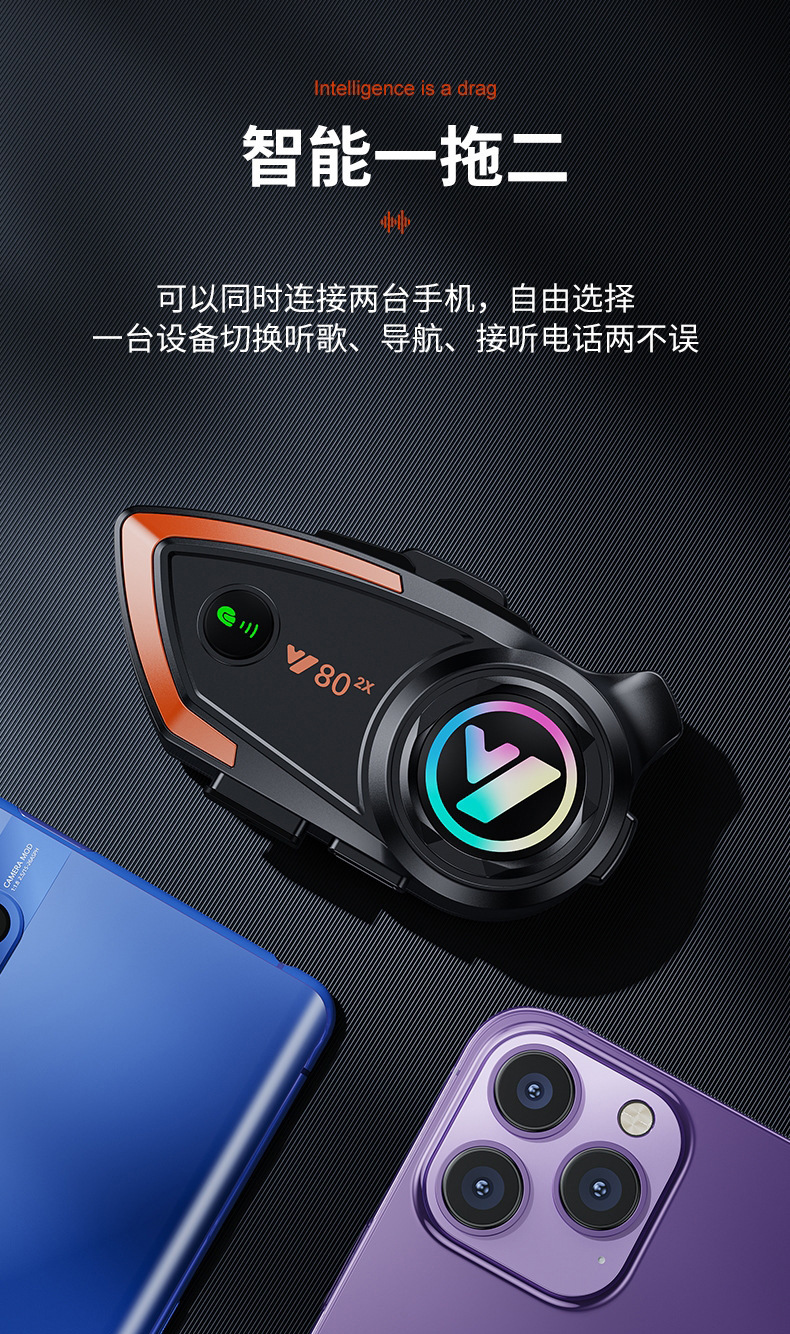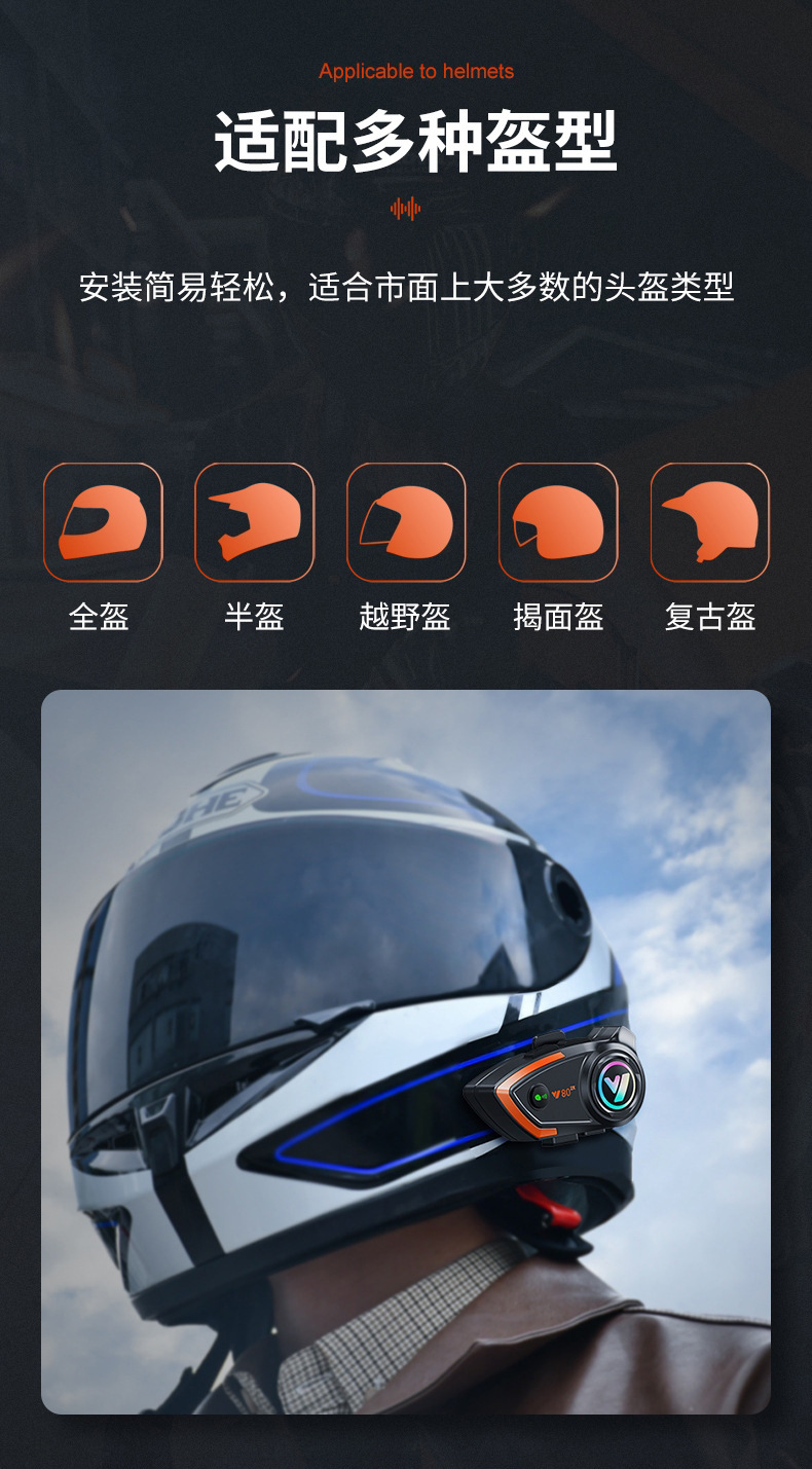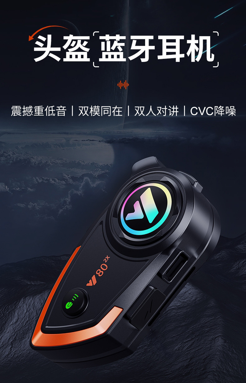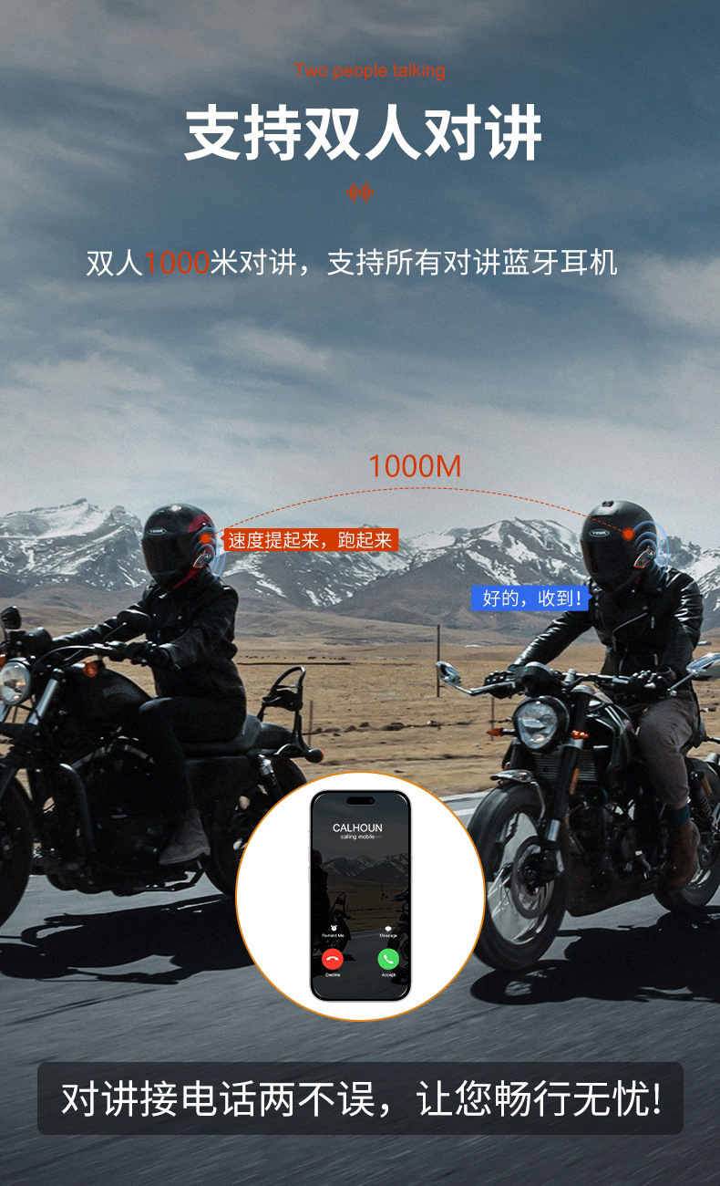 Bluetooth-гарнитура для мотоциклетного шлема Y80-2X для 2 человек, водонепроницаемая, шумоподавление, четкие звонки, для курьеров
