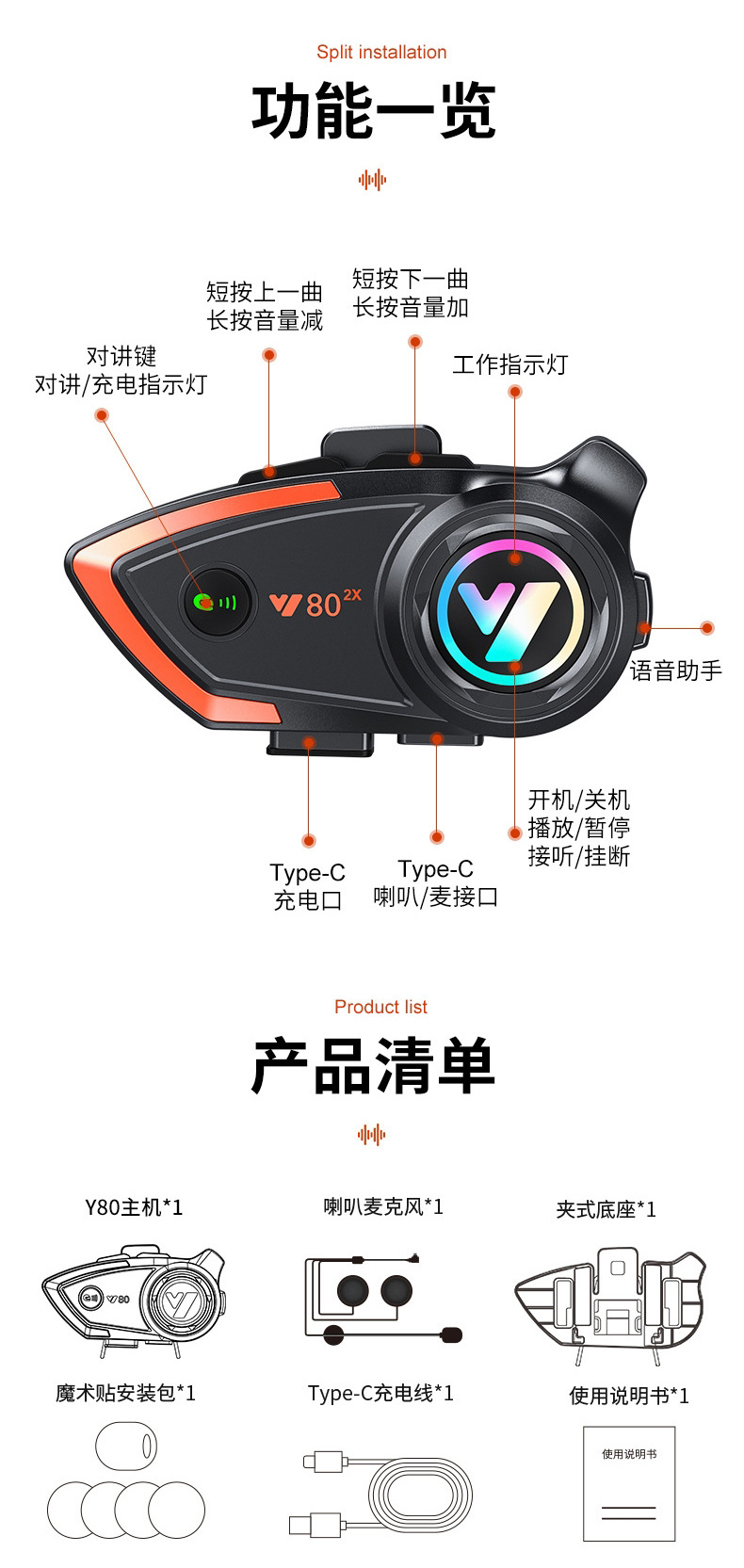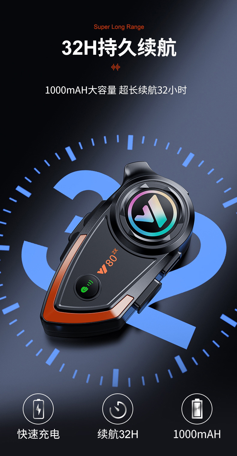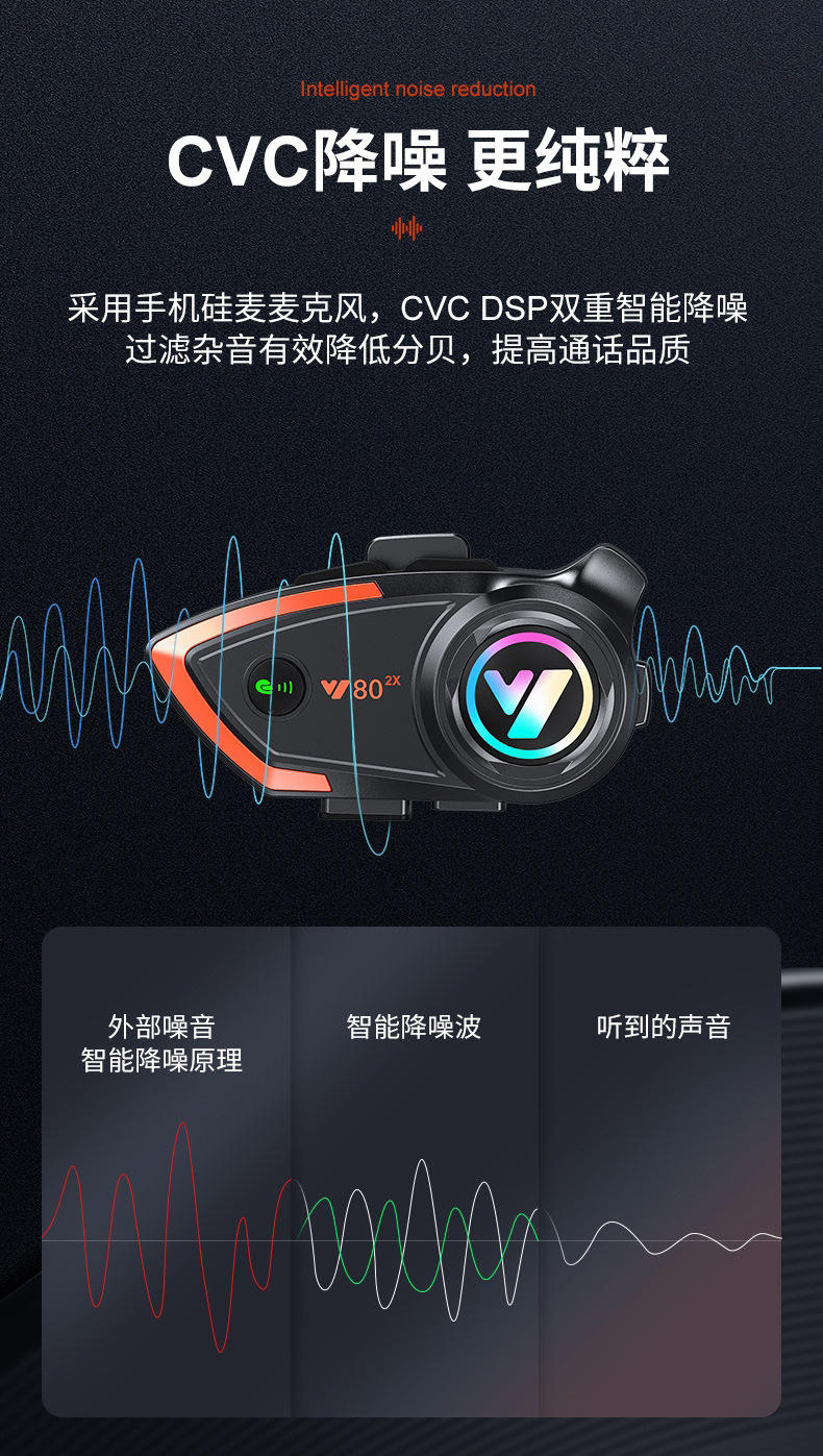 Bluetooth-гарнитура для мотоциклетного шлема Y80-2X для 2 человек, водонепроницаемая, шумоподавление, четкие звонки, для курьеров