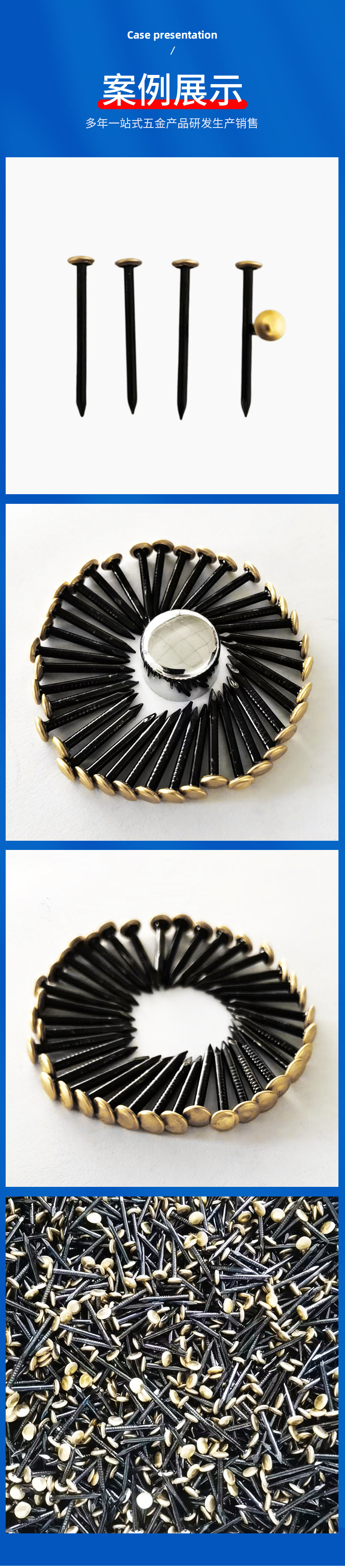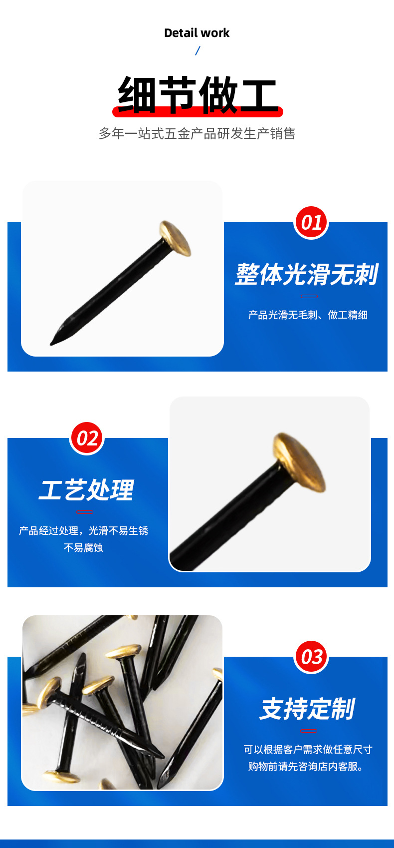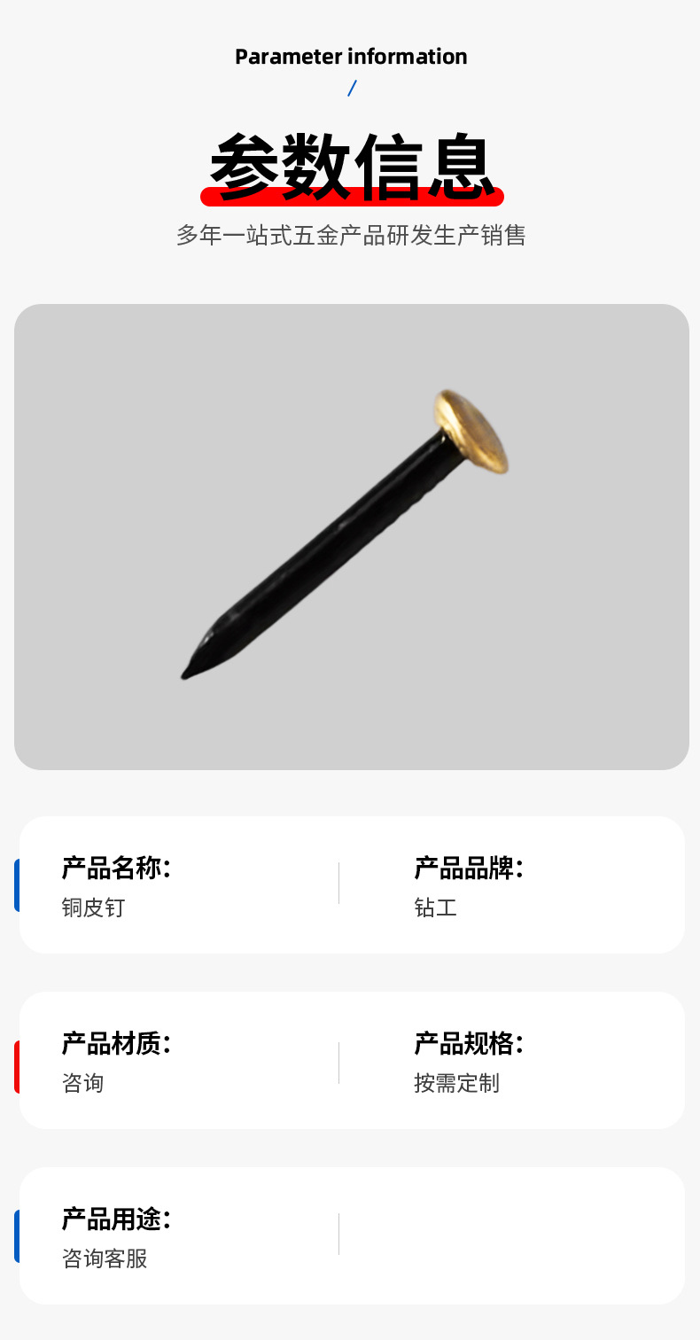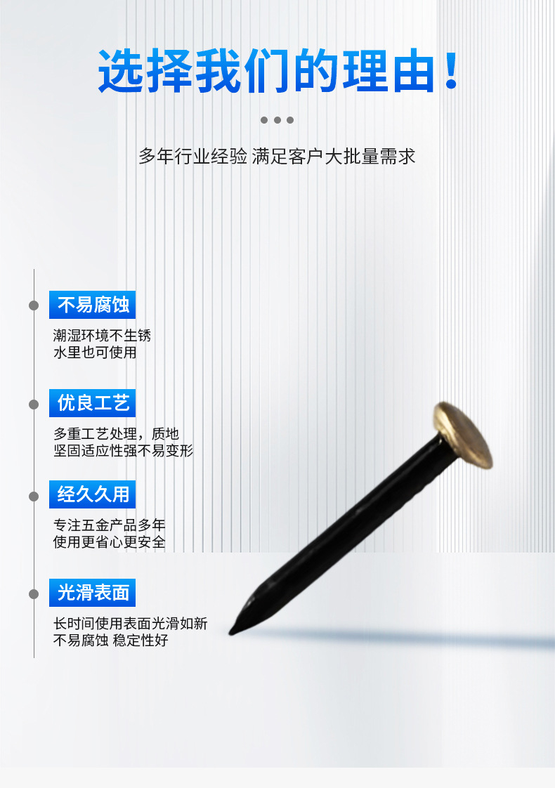Обработка поверхности The nail body is blackened and the copper skin of the hat is riveted