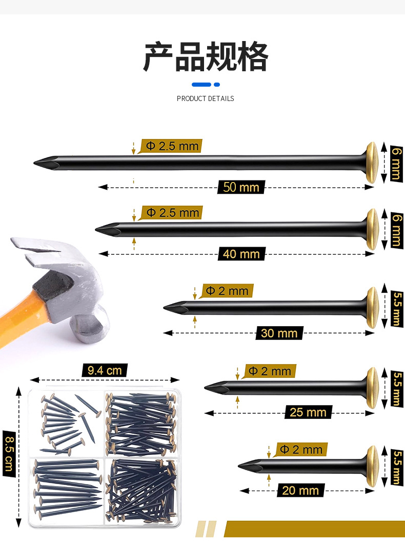 Новые медные гвозди с покрытием, № 55, среднеуглеродистая сталь, различные размеры, стальные гвозди, не подверженные коррозии