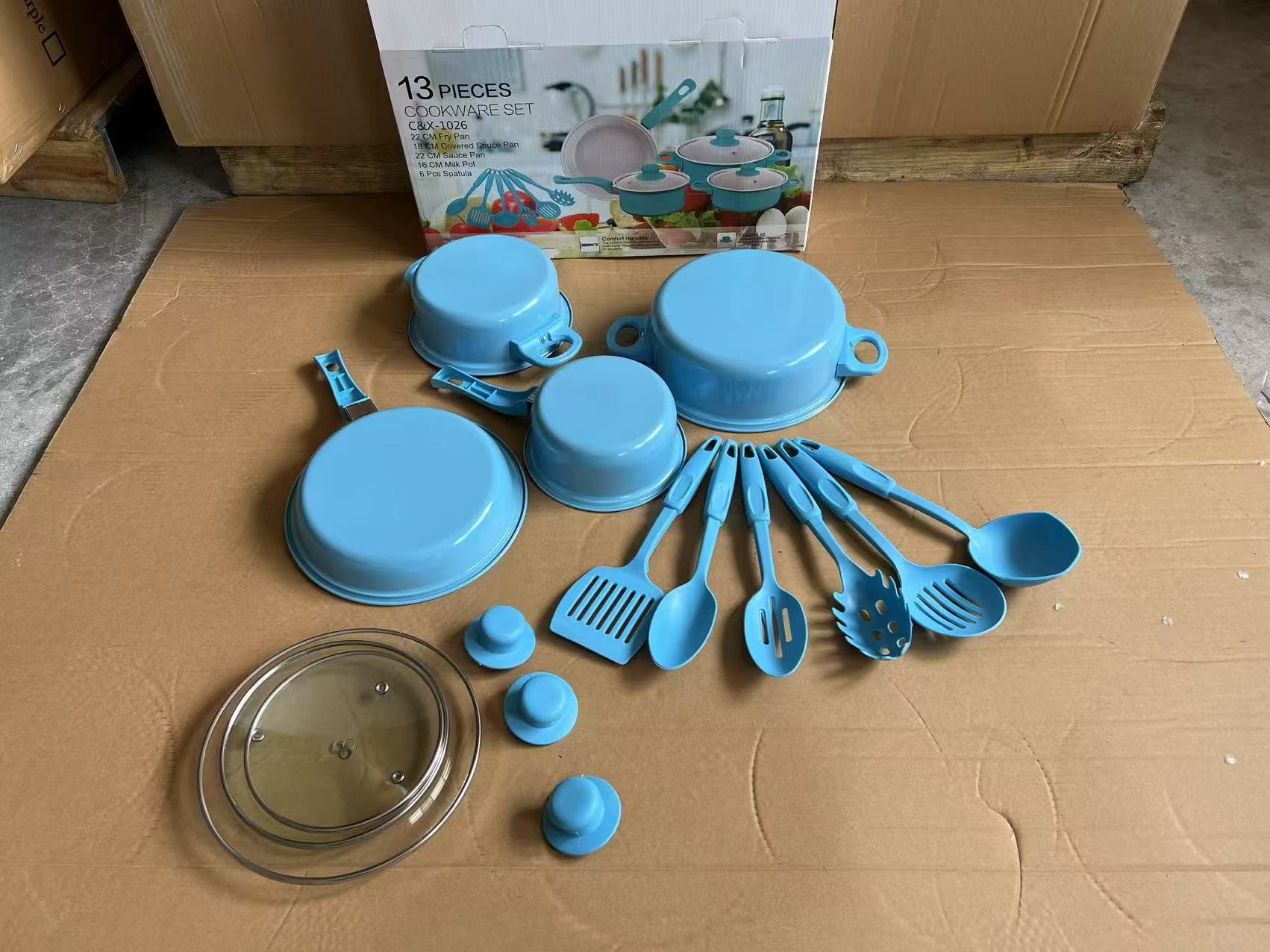 Новый внешний торговый тринадцатипредметный набор кастрюль, лопаток, антипригарных суповых кастрюль, молочных кастрюль, сковородок, кросс-бордерные медицинские каменные кастрюли, многопредметные наборы