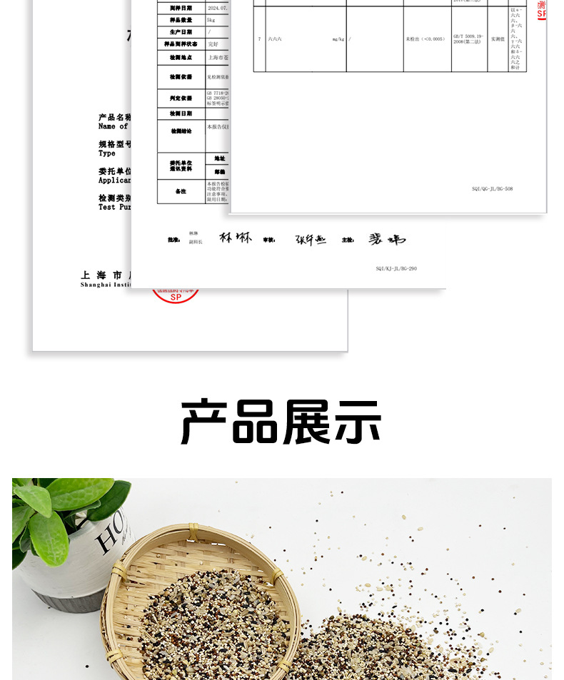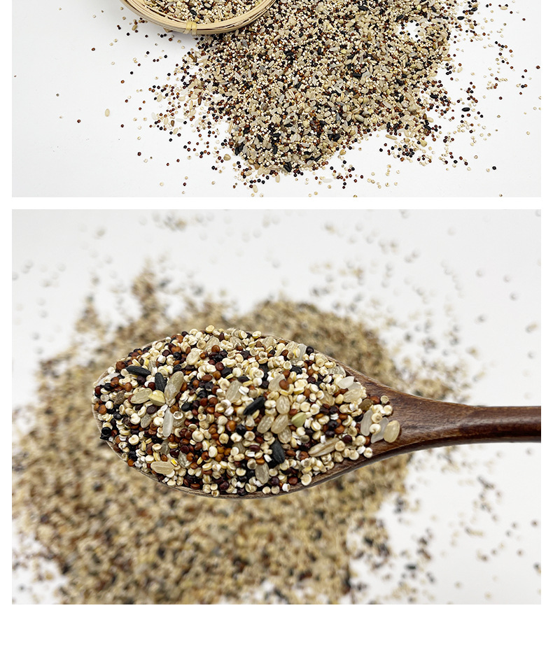 Сырьё и ингредиенты White quinoa, red quinoa, brown rice, black quinoa, germ rice, black rice, highland barley rice, buckwheat, oats, tartary buckwheat