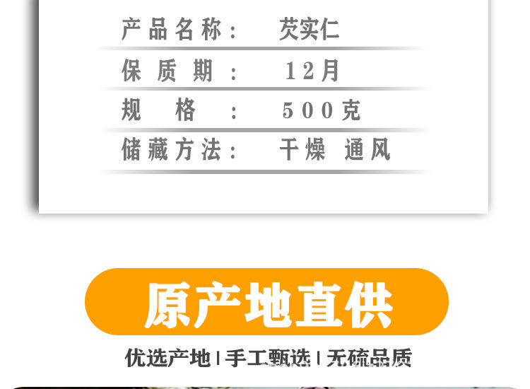 📦 | 500g whole gorgon seeds (packed in bags) | ¥28.8 / ≈ 347 ₽ | 1575 | 5850846041623 | |