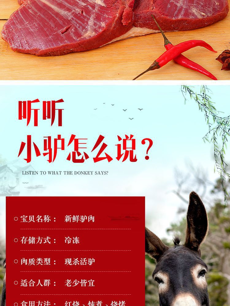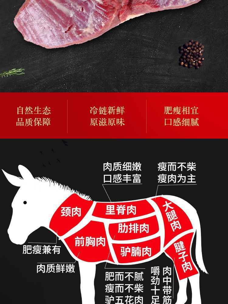 Свежезабитое мясо осла, сырое мясо осла, фермерское, свободно выгуливающееся, большие куски, вакуумная упаковка, настоящее мясо осла, свежее, оптовая продажа