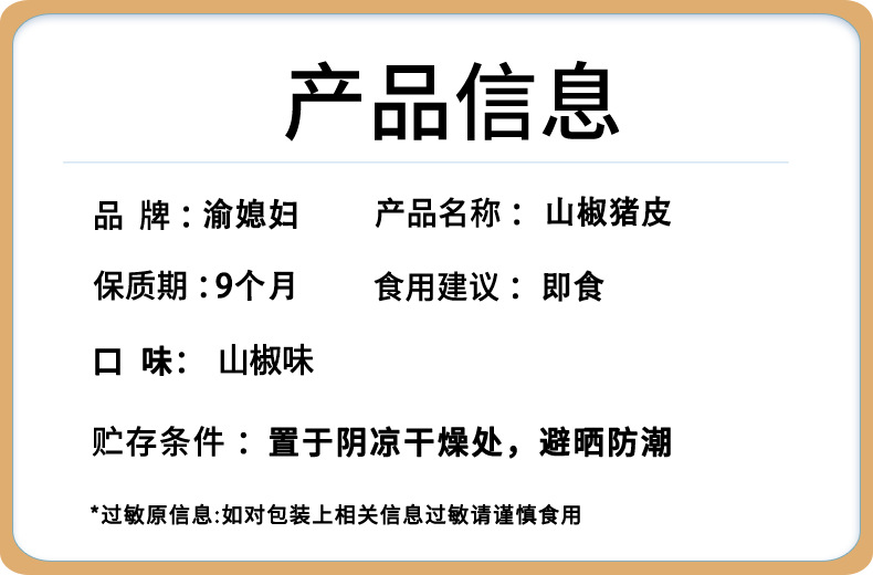 ![]() | Yu wife sansho pork skin 15g | 50шт: ¥0.42, 100шт: ¥0.40, 1000шт: ¥0.39 | 42565 | 6018289462394 |