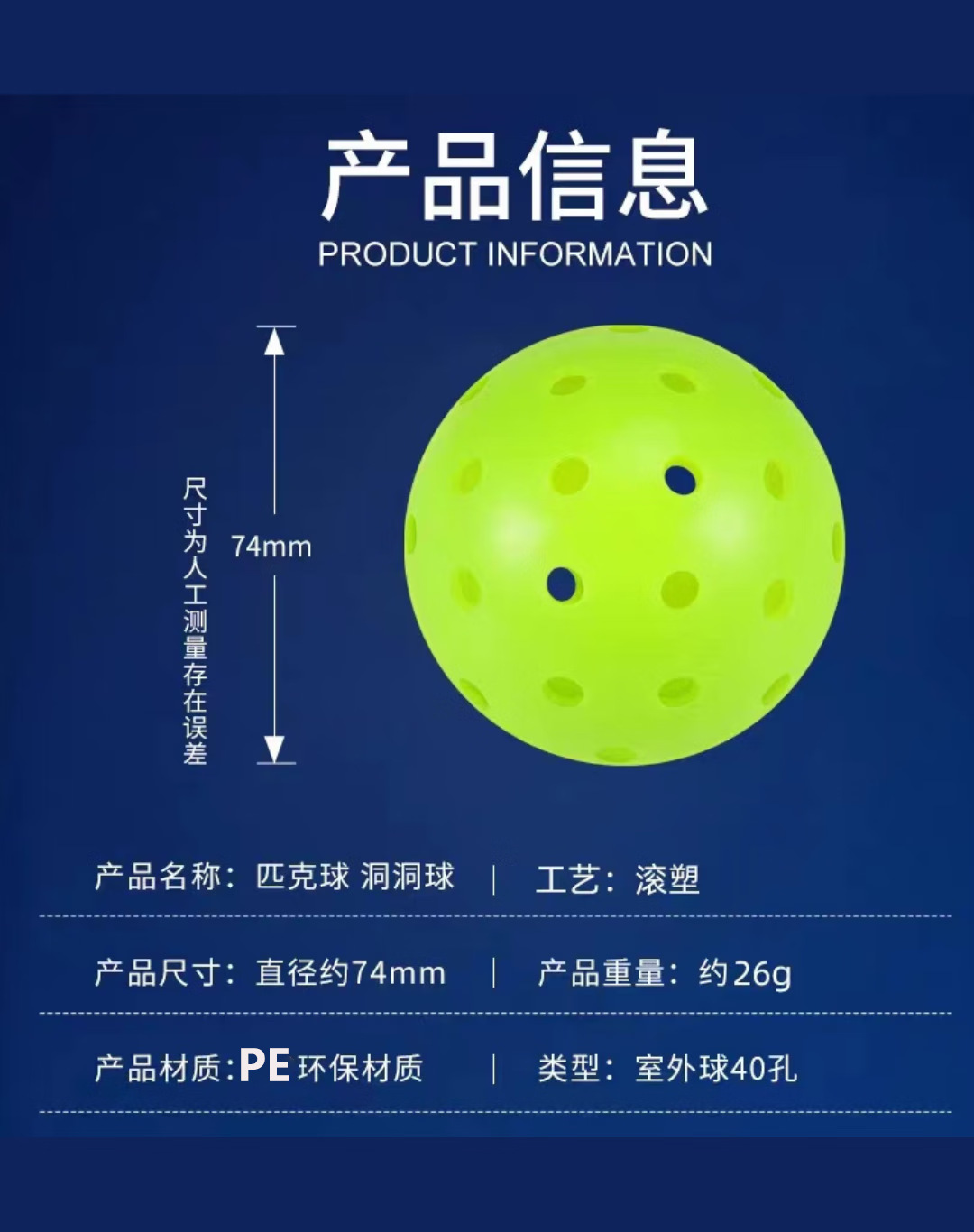 磨砂面滚塑一体匹克球、可通过USAPA 认证(比赛用球)