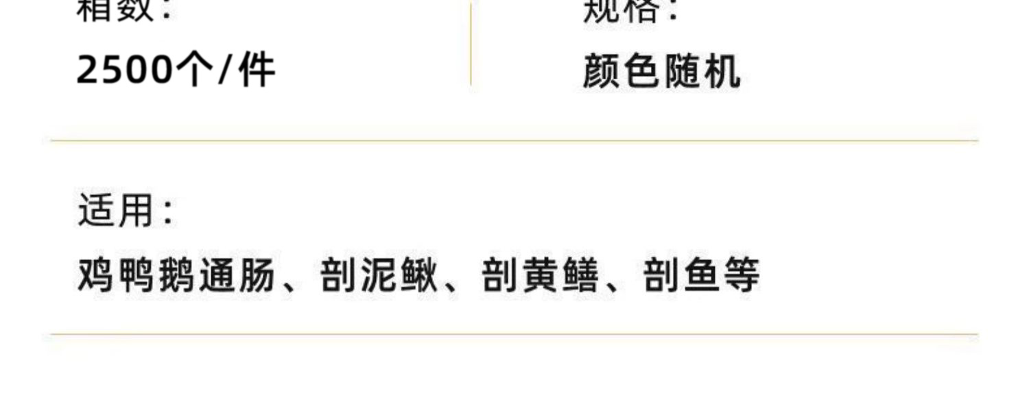 📦 | Random color | Chicken and duck intestine cleaner-2500 pieces/piece | 2шт: ¥0.22, 100шт: ¥0.21, 2500шт: ¥0.20 | 99978019 | 5854964856381 |