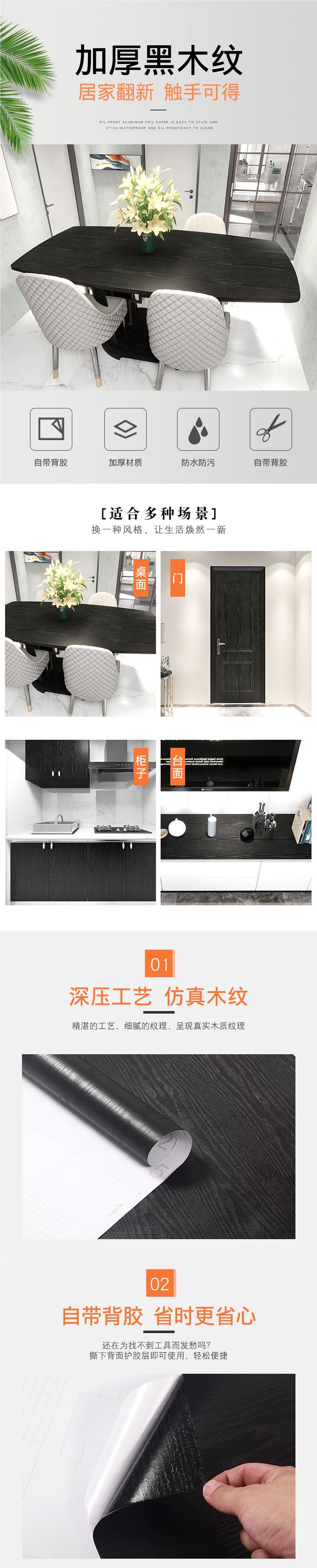 Наклейка с древесным рисунком, черная, для ремонта мебели, простая, самоклеящаяся, водостойкие обои, чистый цвет