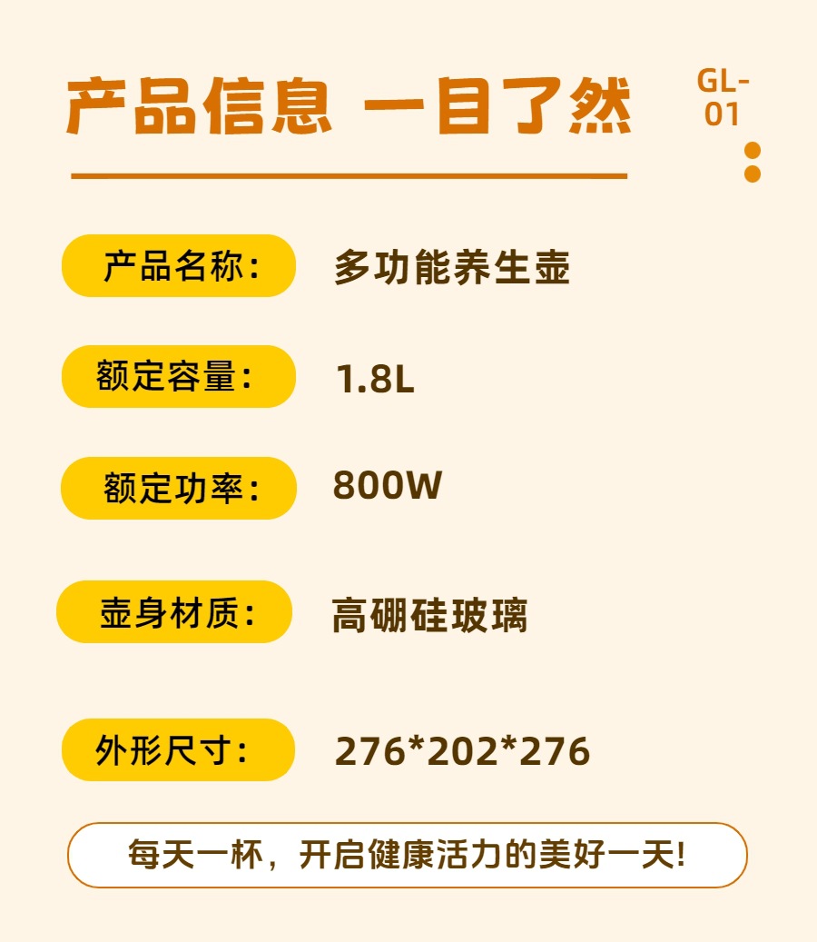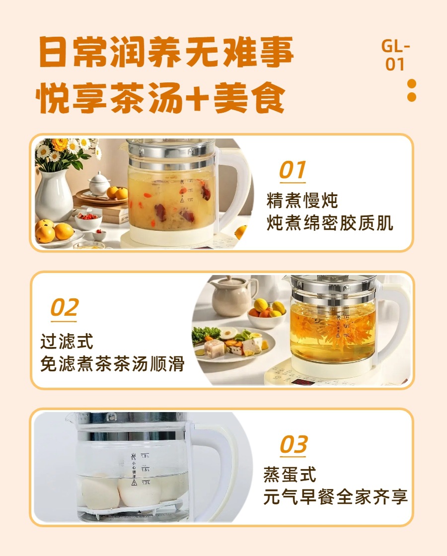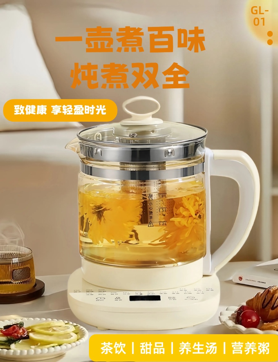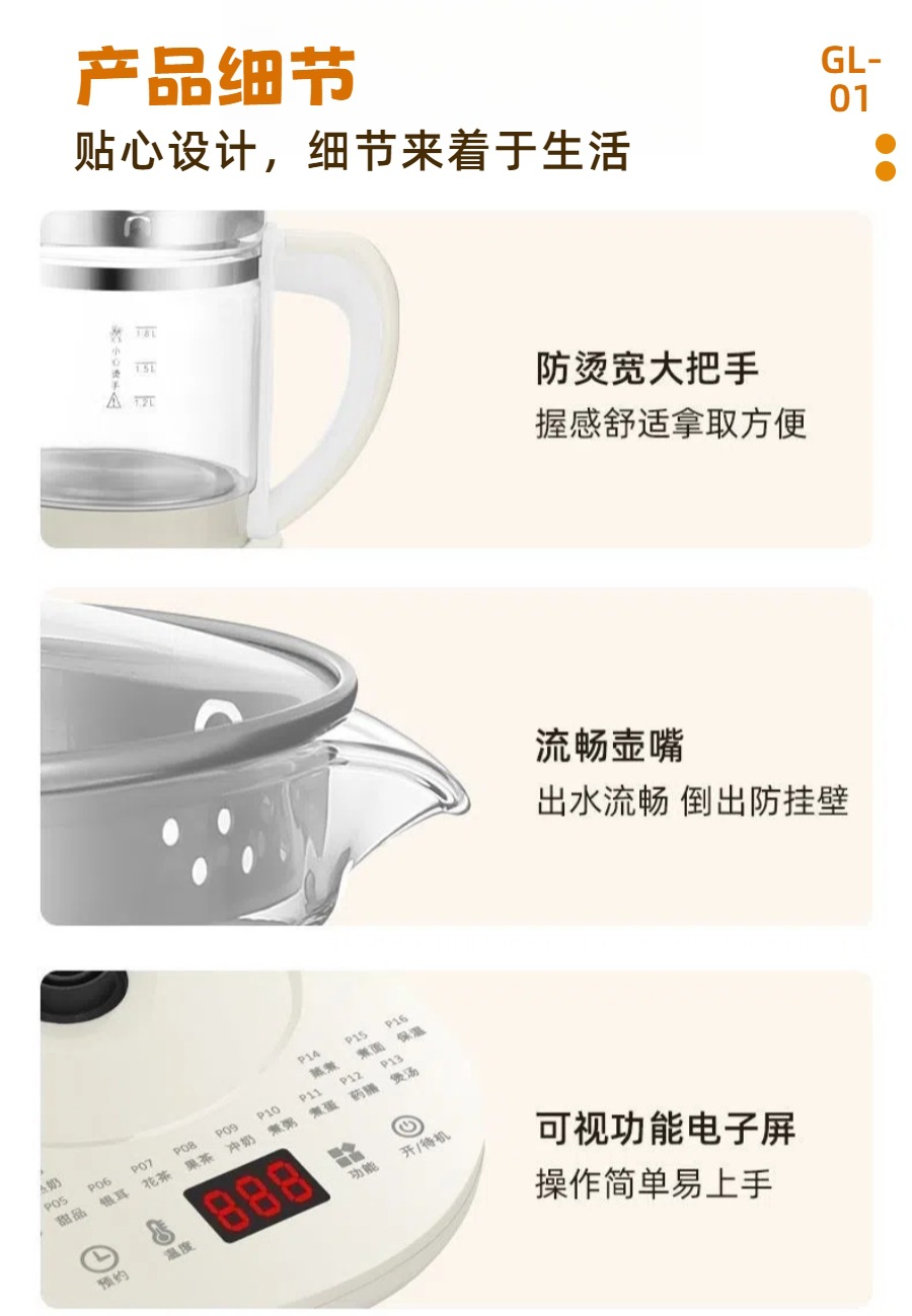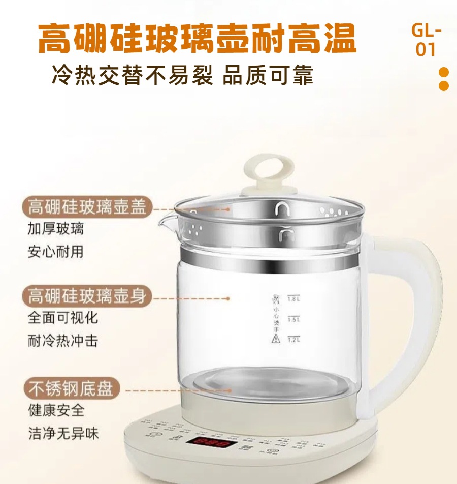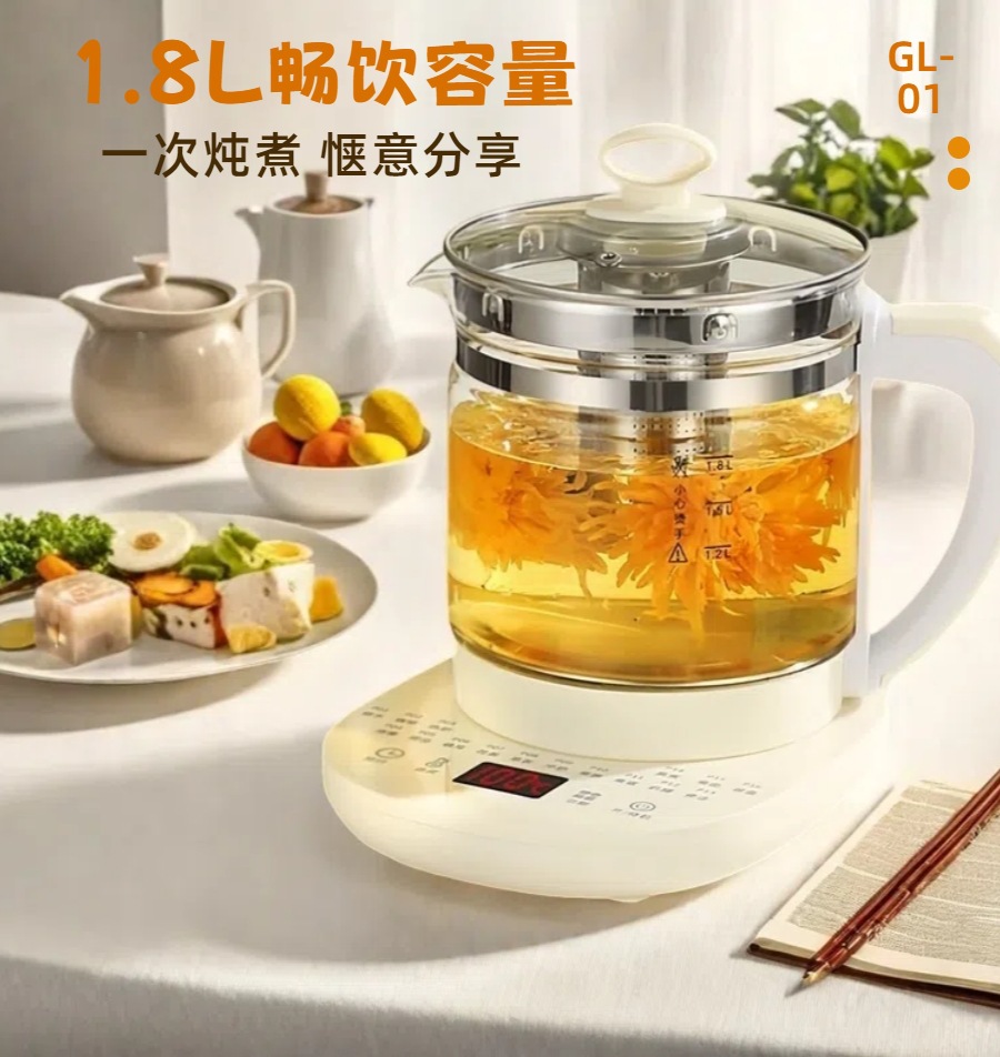 Полностью автоматический здоровый горшок, бытовой, объем 1.8L, многофункциональный чайник, стеклянный чайник для воды, офисный чайник для приготовления чая маленький