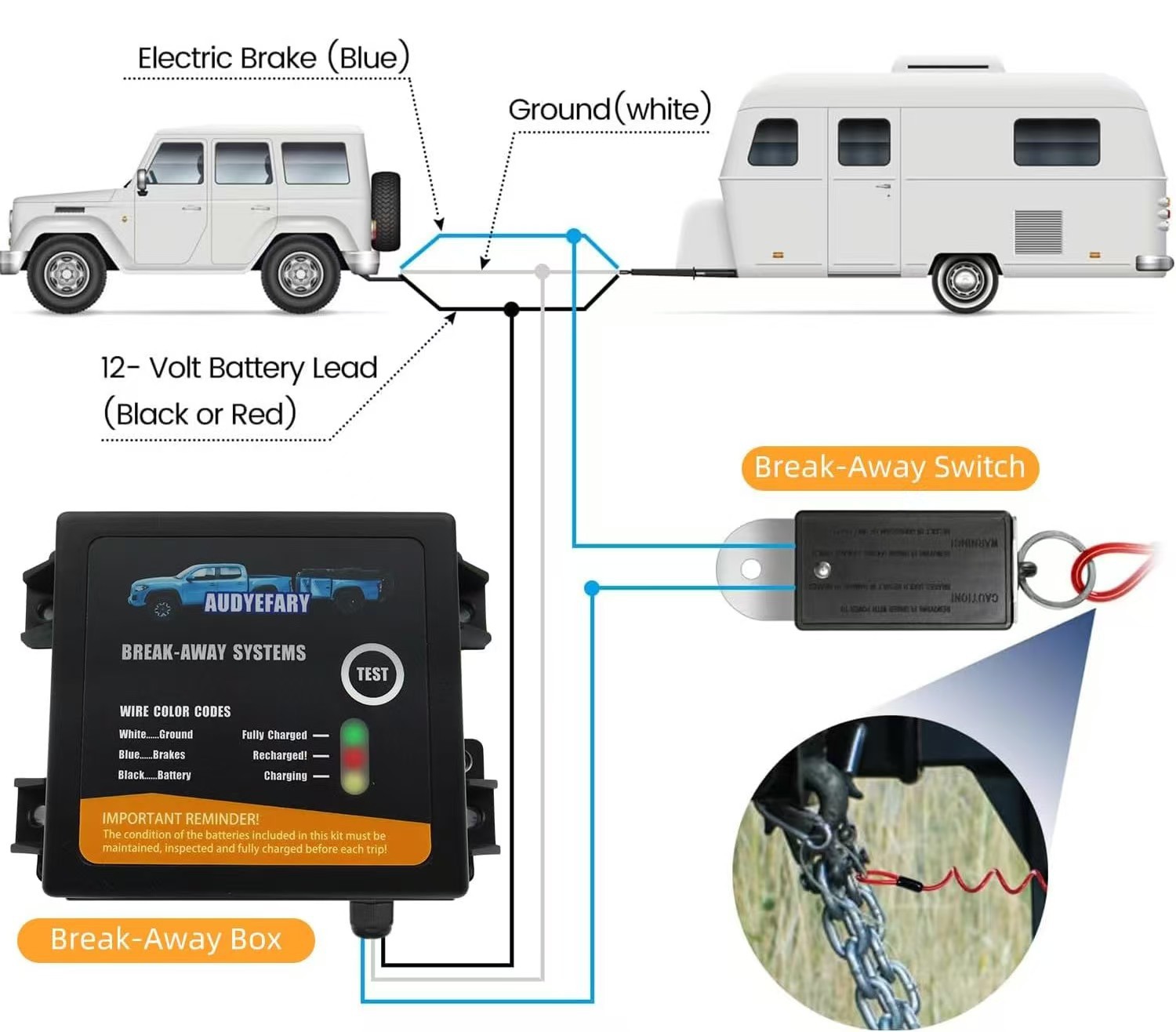 12V 5Ah аккумулятор для электромагнитного тормоза прицепа, блок управления безопасностью, модификация экстренного тормоза