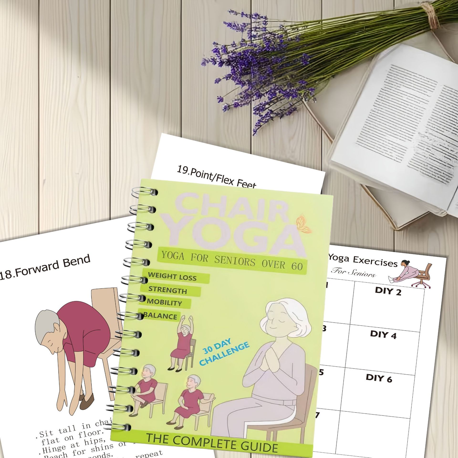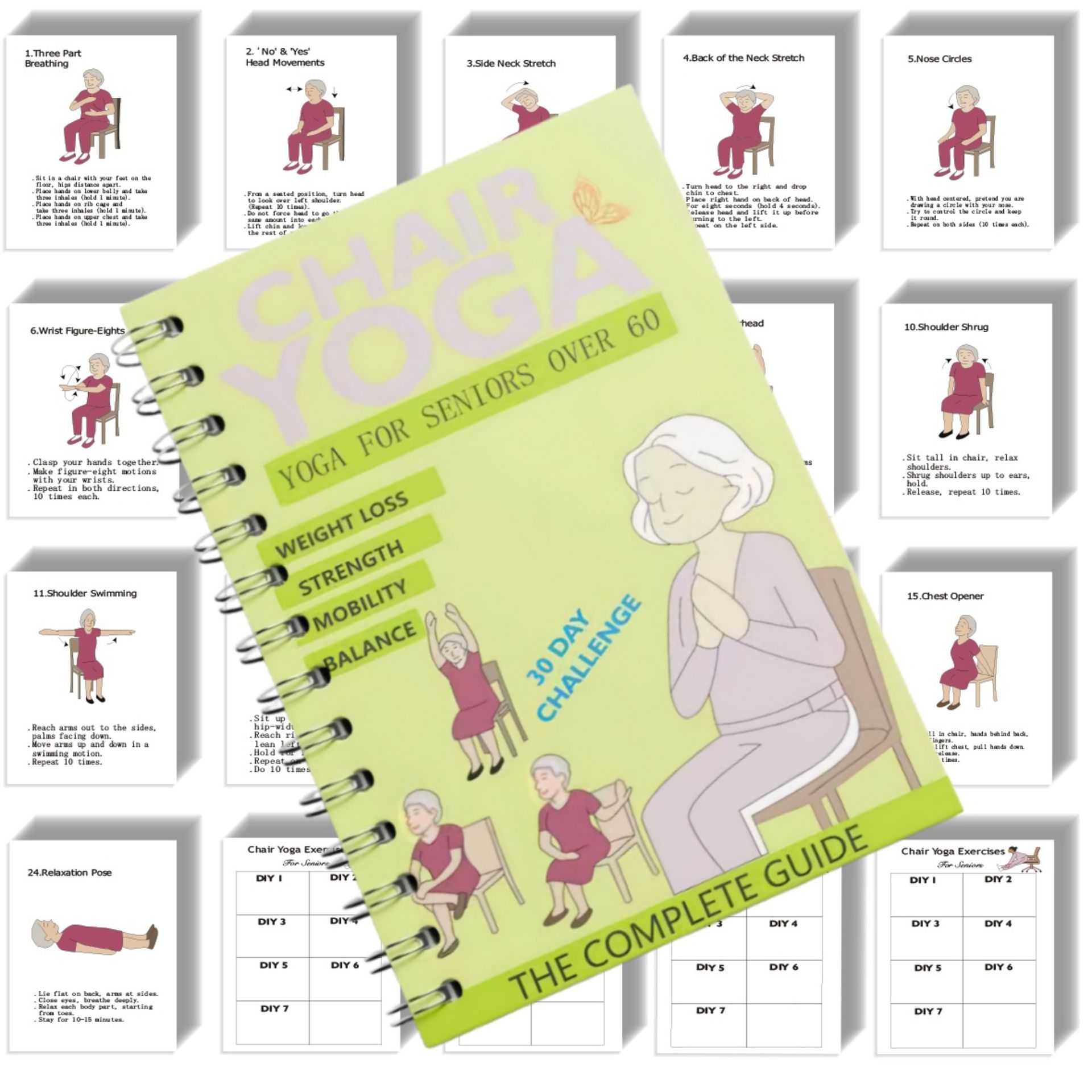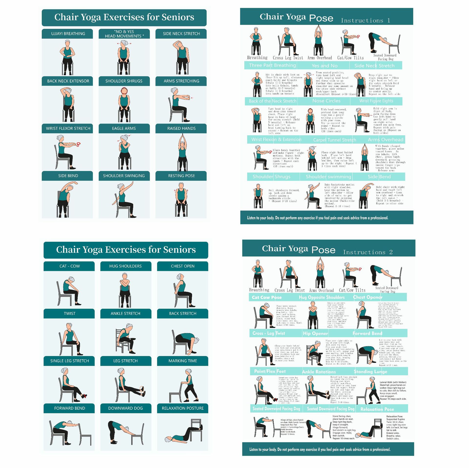 Кросс-бордер 4-частный комплект упражнений для стула Домашний фитнес Запись посещений 2025 Новый постер йоги для пожилых людей