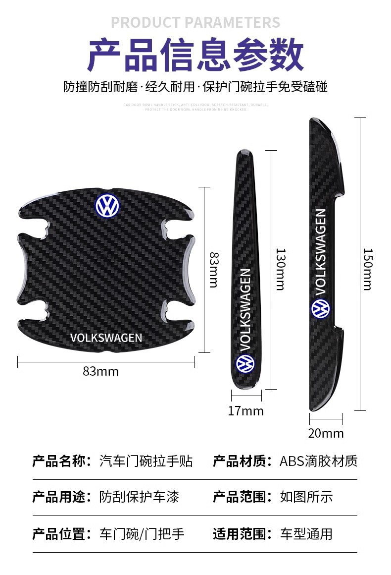 📦 | Volkswagen [carbon fiber pattern] door bowls (4 pieces) + handle stickers (4 pieces) | ¥4.5 / ≈ 54 ₽ | 88888 | 6023258354929 | |