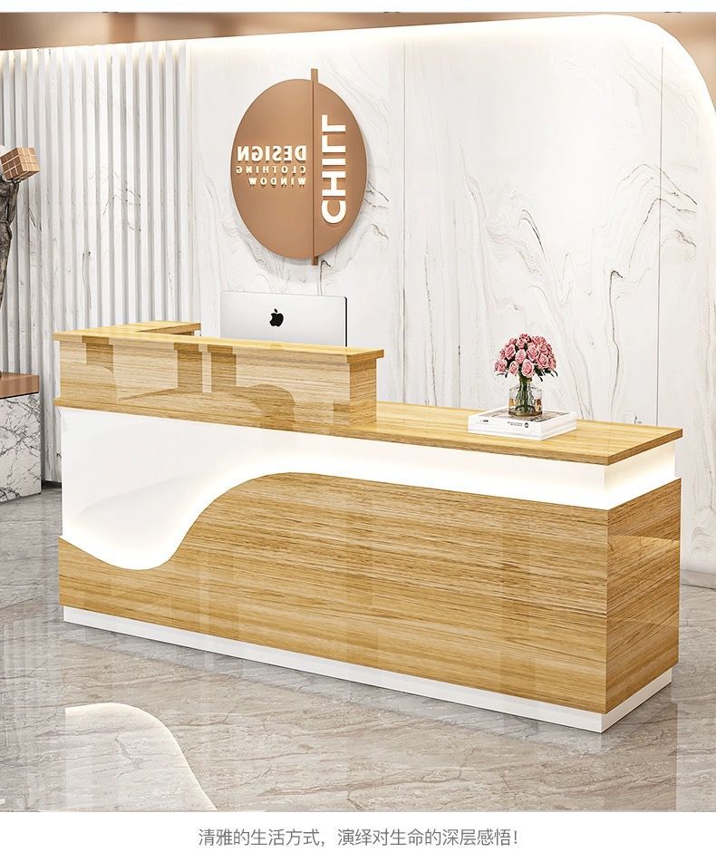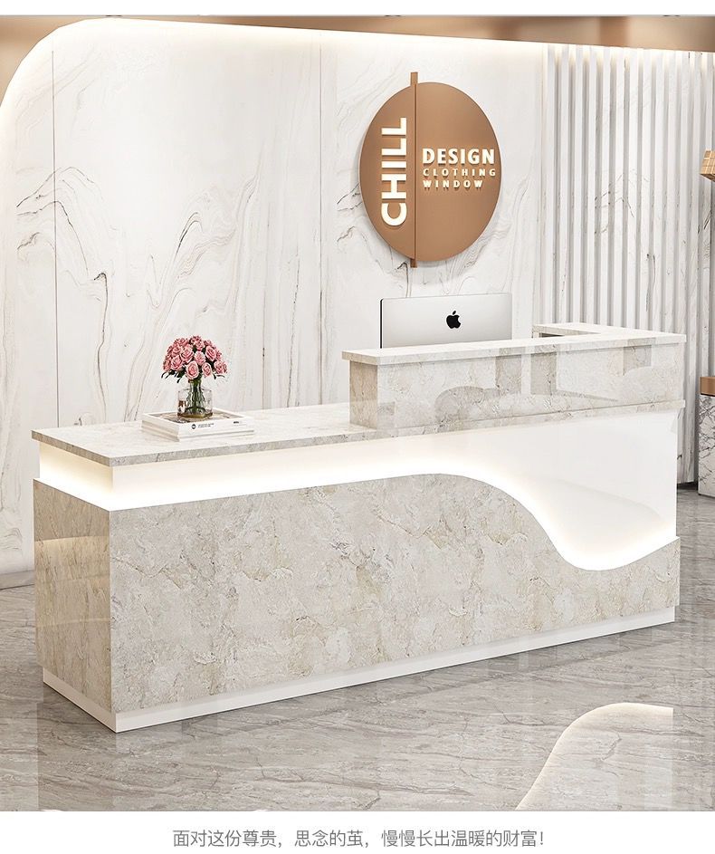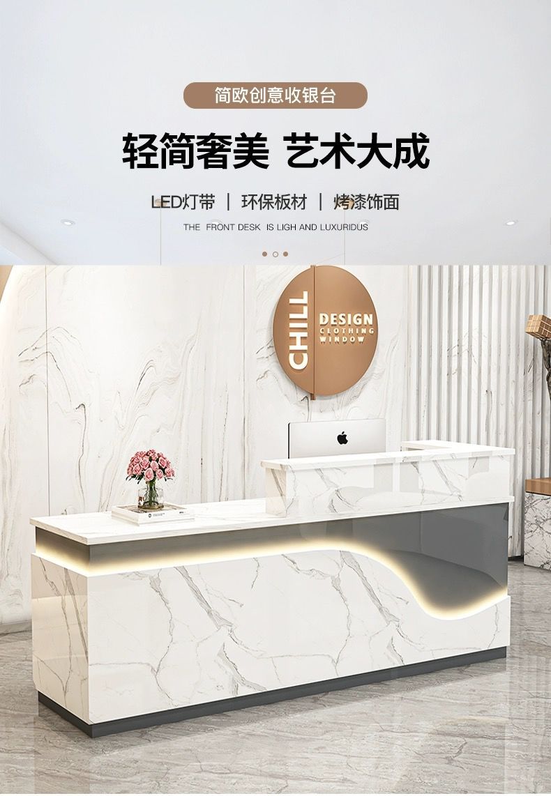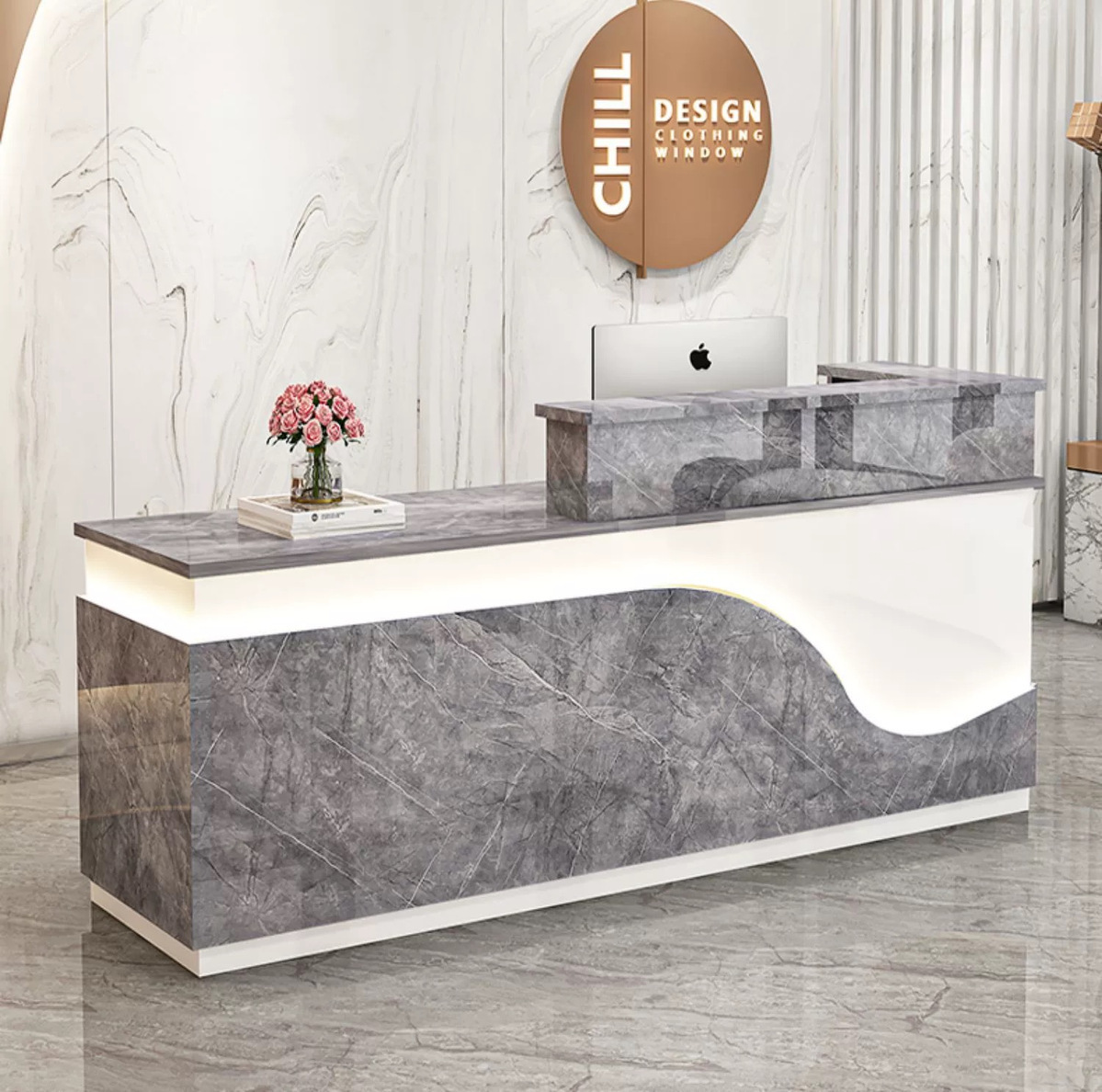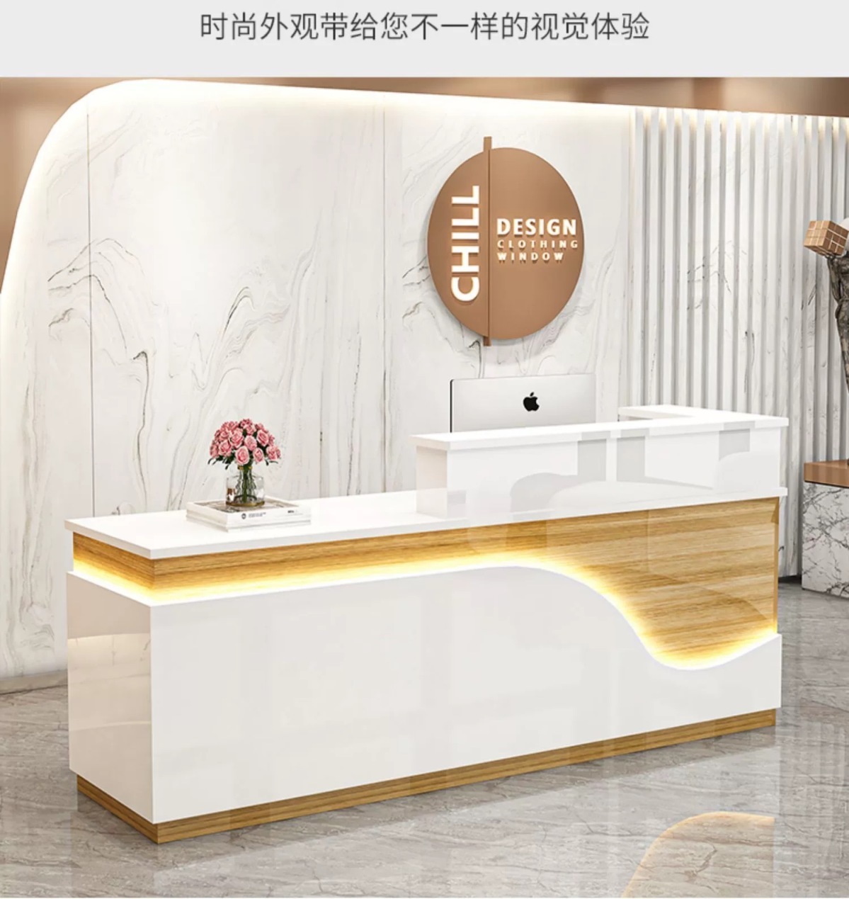 Простой современный стол для ресепции компании, салон красоты, кассовый стол, уголок, светящаяся лента