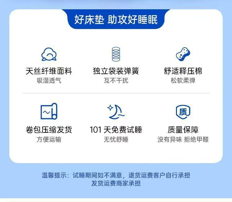 ![]() | Independent pocket spring edge reinforced cloud soft 27 thick - shipped in roll package | 1350mm*1900mm | ¥440.0 / ≈ 5 300 ₽ | 500 | 6021452403862 | |